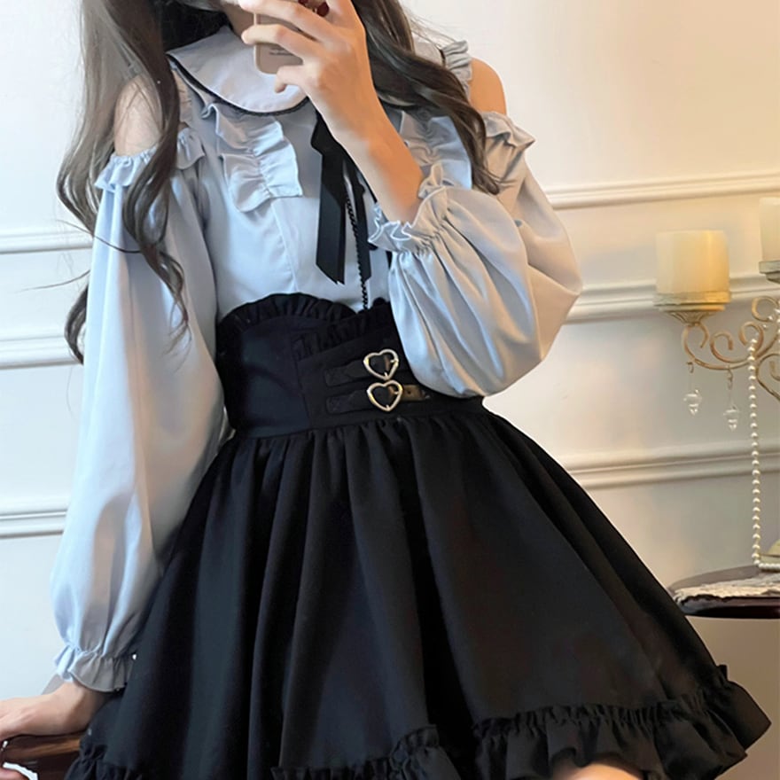 ゆめかわいい 量産型 セットアップ 長袖 スカート オープンショルダー