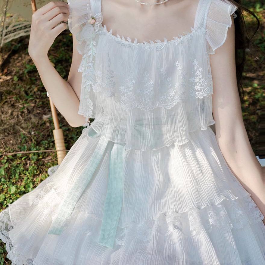 まるで妖精のような、儚げで可愛らしいサスペンダードレス。