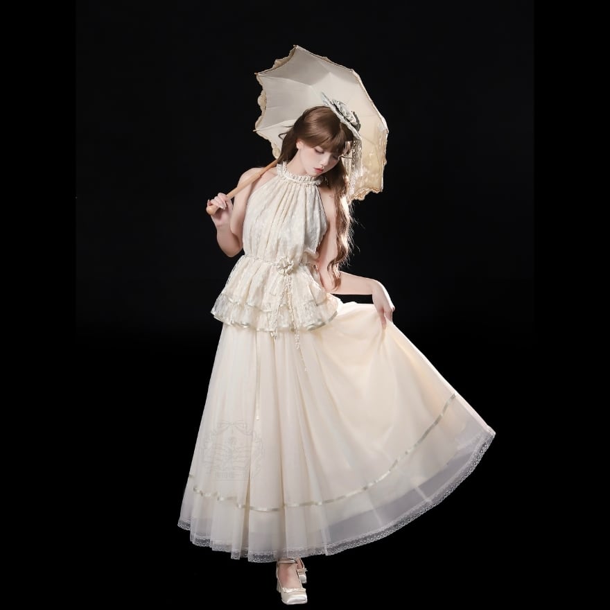 月の光を纏う、儚いドットのベール。クラシカルな装いを優しく引き立てるインナーが、あなたのロリィタコーデをさらに繊細で特別なものにする。
