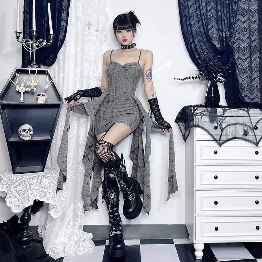 #ゴシック #アシンメトリー #ドレス #イベント衣装 #ハロウィン #グレーファッション #退廃美 #闇かわいい #サイバー系 #ヴィジュアル系 #撮影衣装