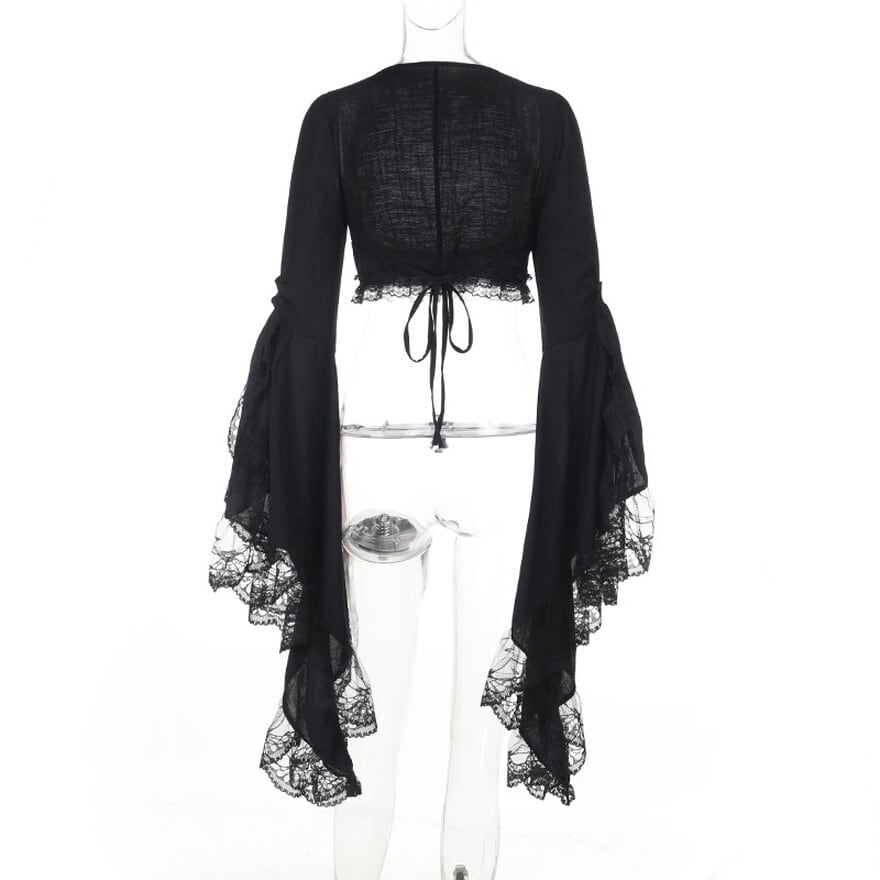 黒レースとドレープが美しく揺れる、ゴシックテイストのロングスリーブボレロです。