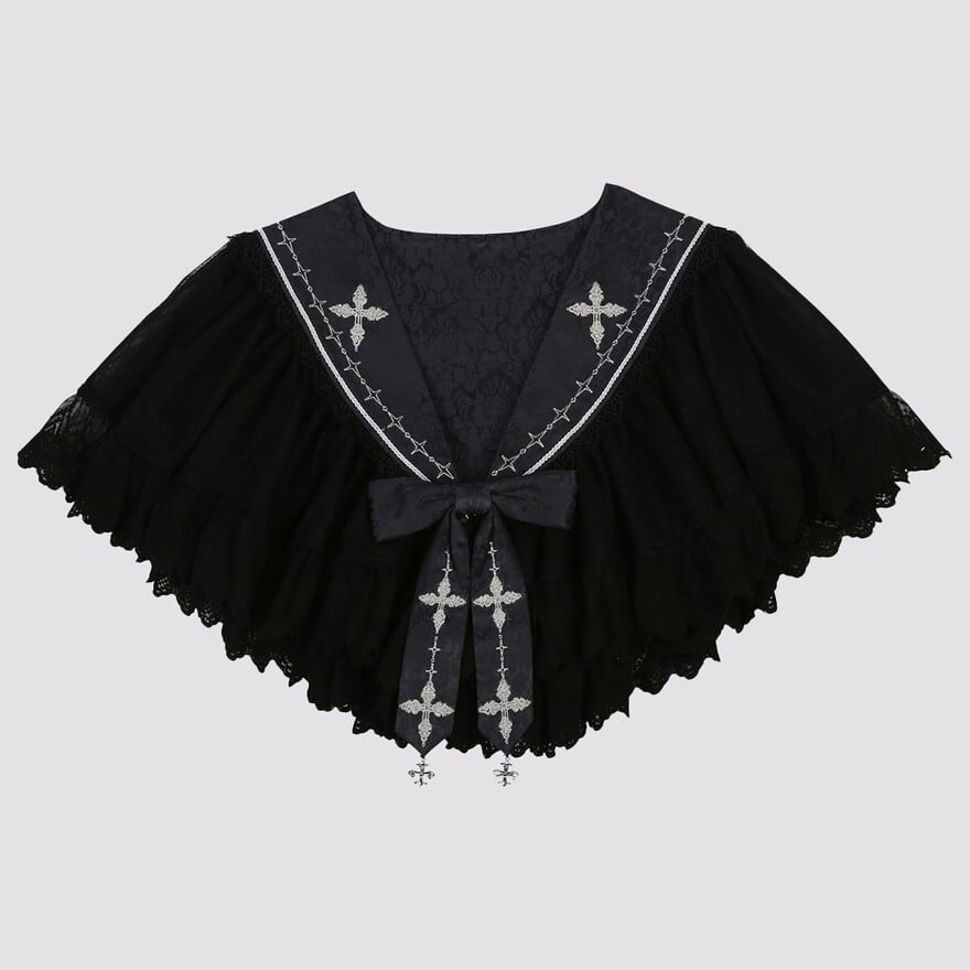 関連キーワード: #ゴスロリ #ゴシックロリィタ #ロリィタファッション #セットアップ #ケープ #ジャンパースカート #JSK #建築柄 #ゴシック建築 #クロスモチーフ #フリル #レース