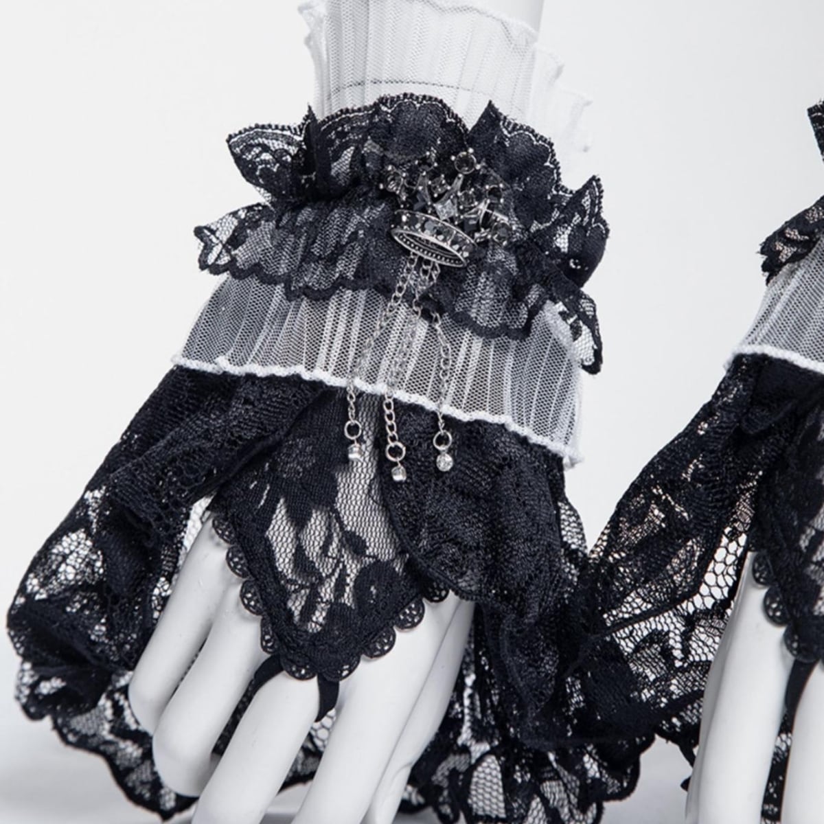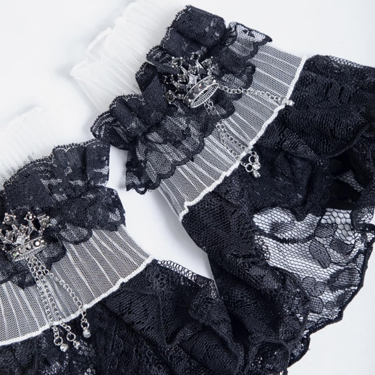 ゴスロリ アームカフス レース フリル チェーン クラウンチャーム 黒白 ロリィタ