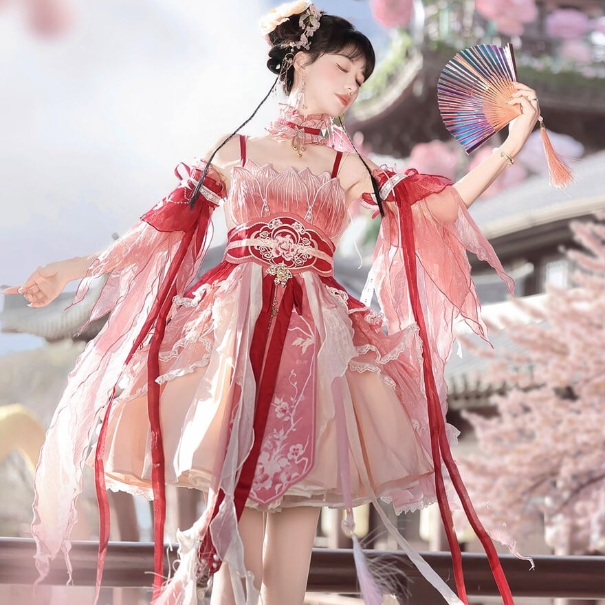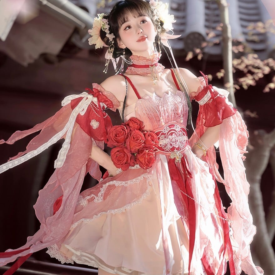 中華ロリィタ セットアップ : キャミソールドレス+羽袖+ウエストベルト+付け襟