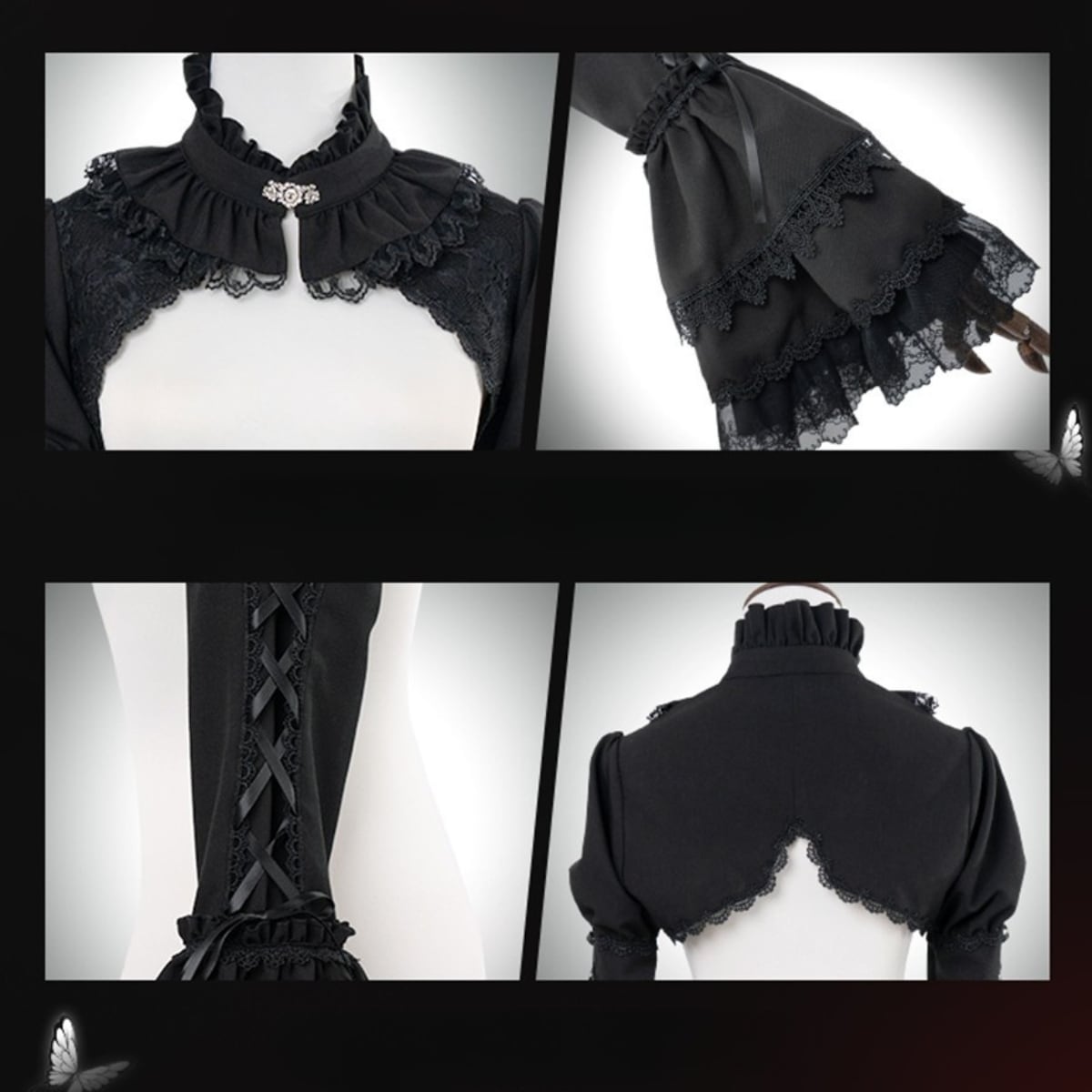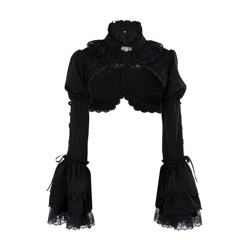 秋 冬服 ゴスロリ ブラウス ショート 袖コン 姫袖 スリーブ レース スタンドカラー アラサーコーデ