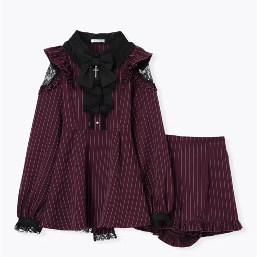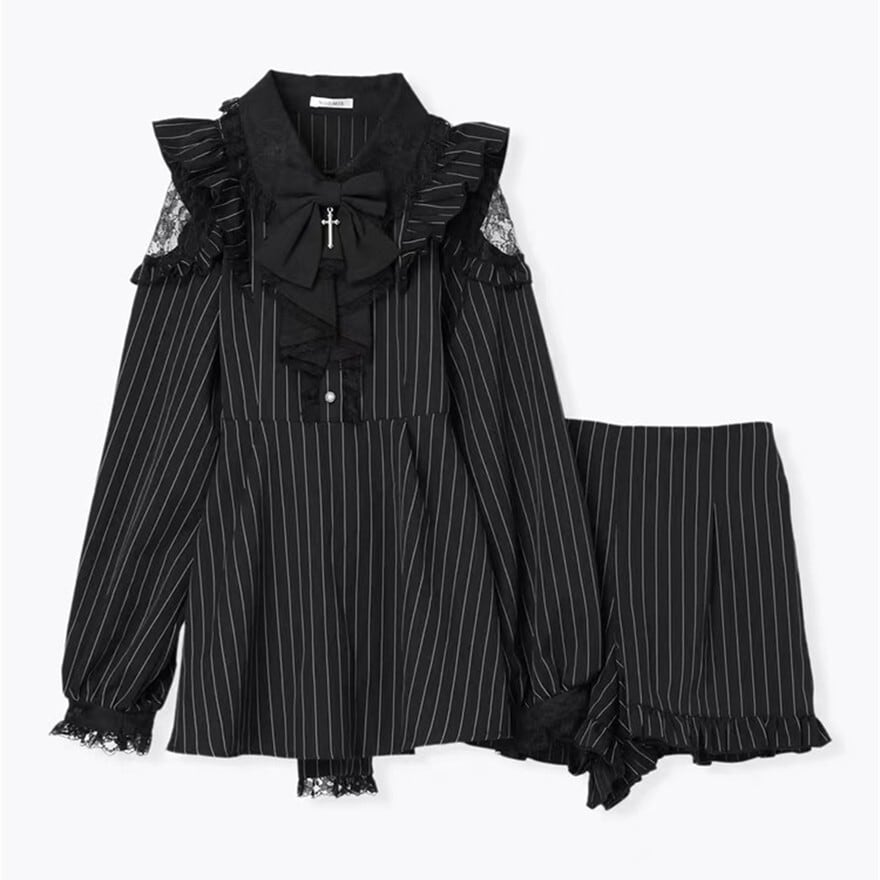 関連キーワード: #ロリータ #ゴスロリ #ゴシック #セットアップ #ストライプ #フリル #可愛い #シック