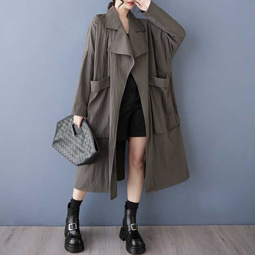 秋風に揺れる、スタイリッシュなロング丈ジャケット。ゆったりとしたシルエットが、こなれ感を演出し、大人のモードスタイルを完成させる。