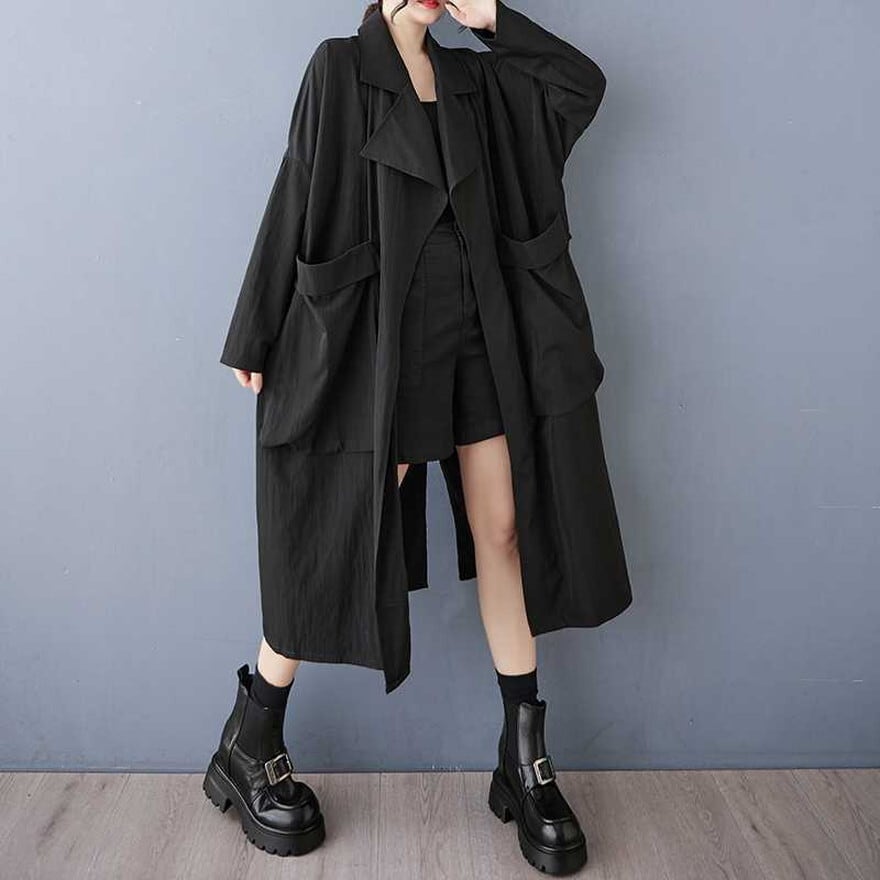 アラサー 秋ジャケット ゆったり ロング丈 モード系ファッション スタイリッシュ 黒 アーミーグリーン アラサー 30代