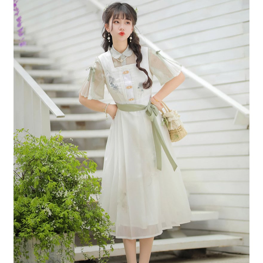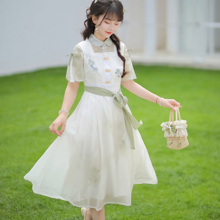 関連キーワード: #ロリータ #セミロリ #華ロリ #中華風 #チャイナ #セットアップ #ワンピース #白 #グリーン #刺繍 #シアー #清楚 #上品 #可愛い #普段着