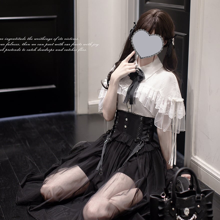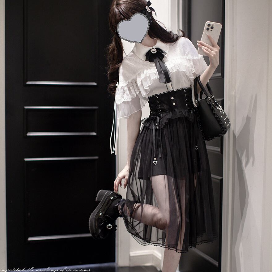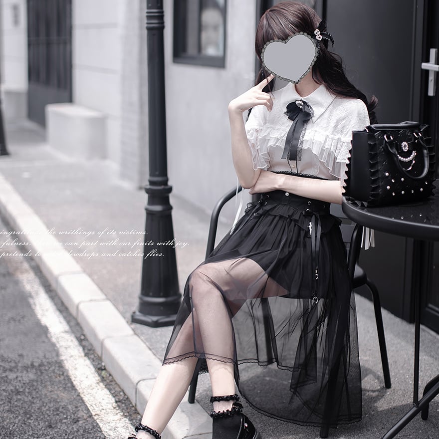 関連キーワード: #地雷系 #量産型 #サブカル #ゴシック #スカート #レイヤード #シースルー #シフォン #レース #編み上げ #コルセット #モノトーン #参戦服 #病みかわ #黒コーデ