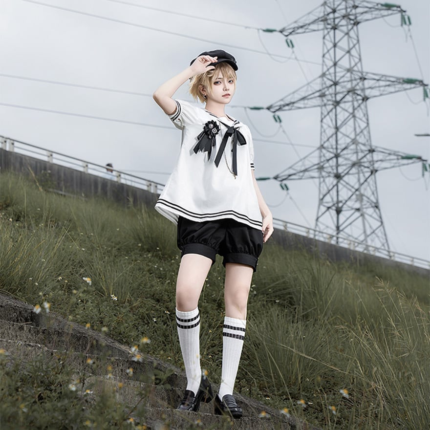 関連キーワード: #皇子系 #少年装 #男装 #セーラー服 #ワンピース #モノトーン #サブカル #地雷系 #パンク #モード #可愛い #参戦服