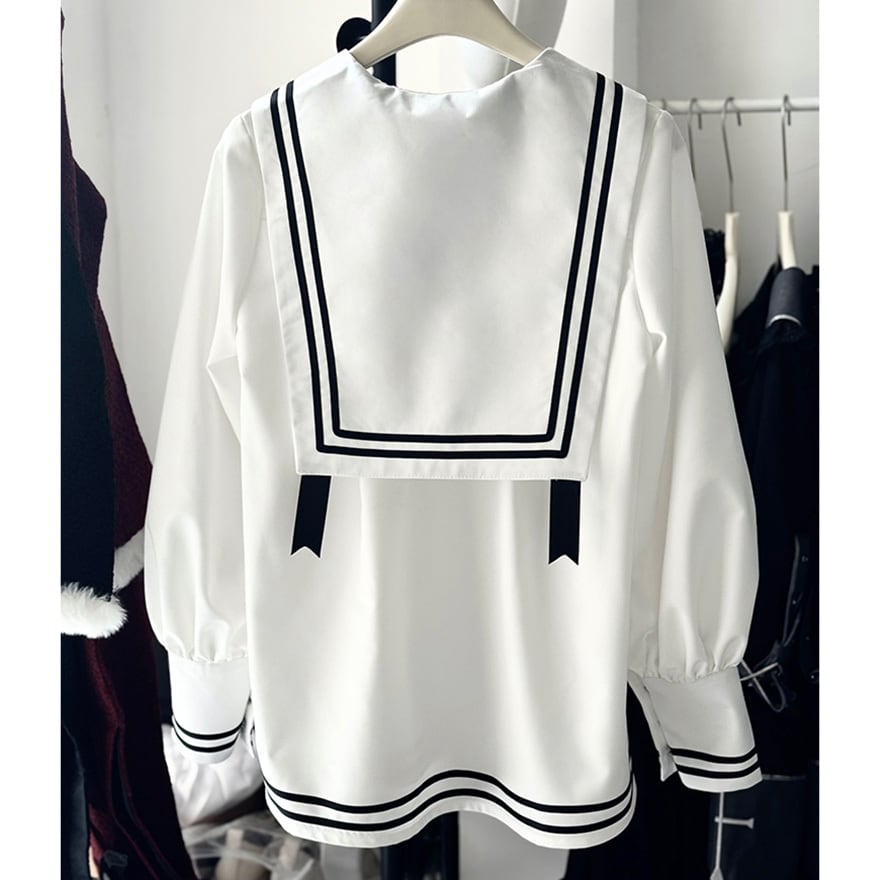 セーラー服の持つ清純さに、モードなテイストを加えた一着。