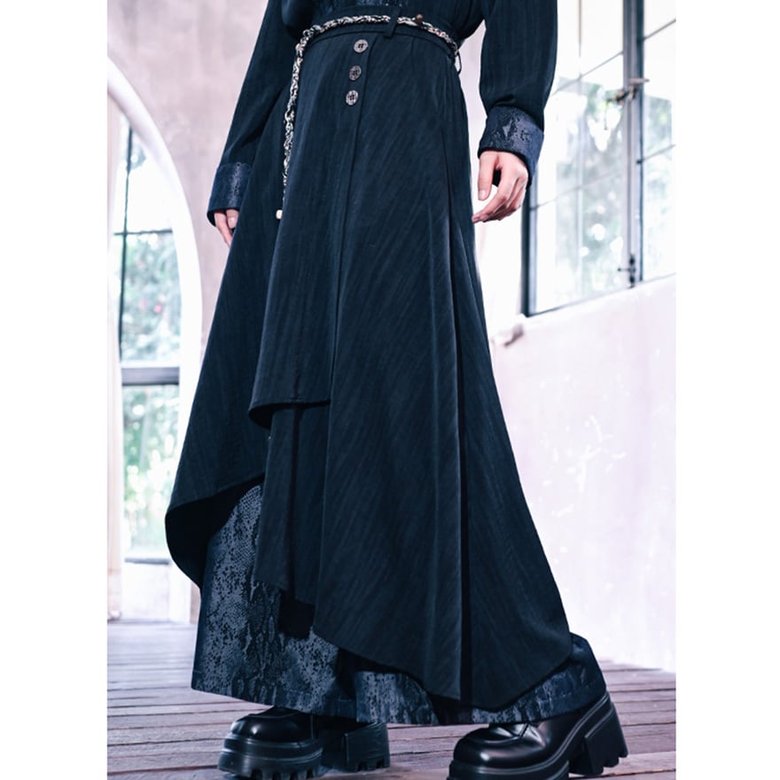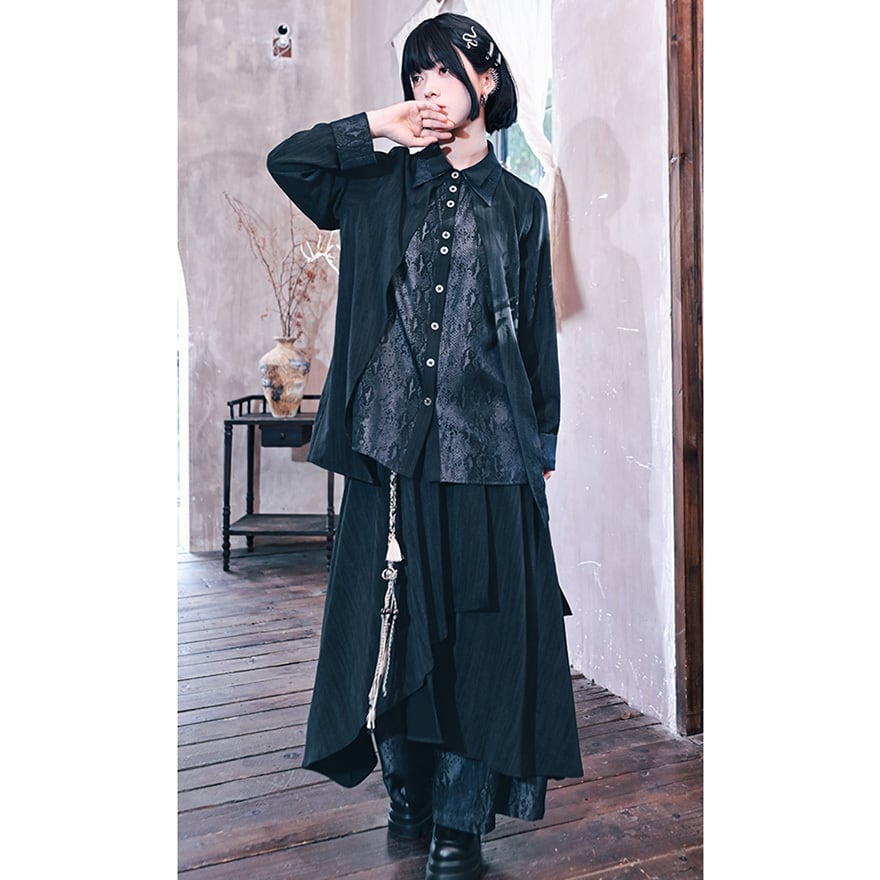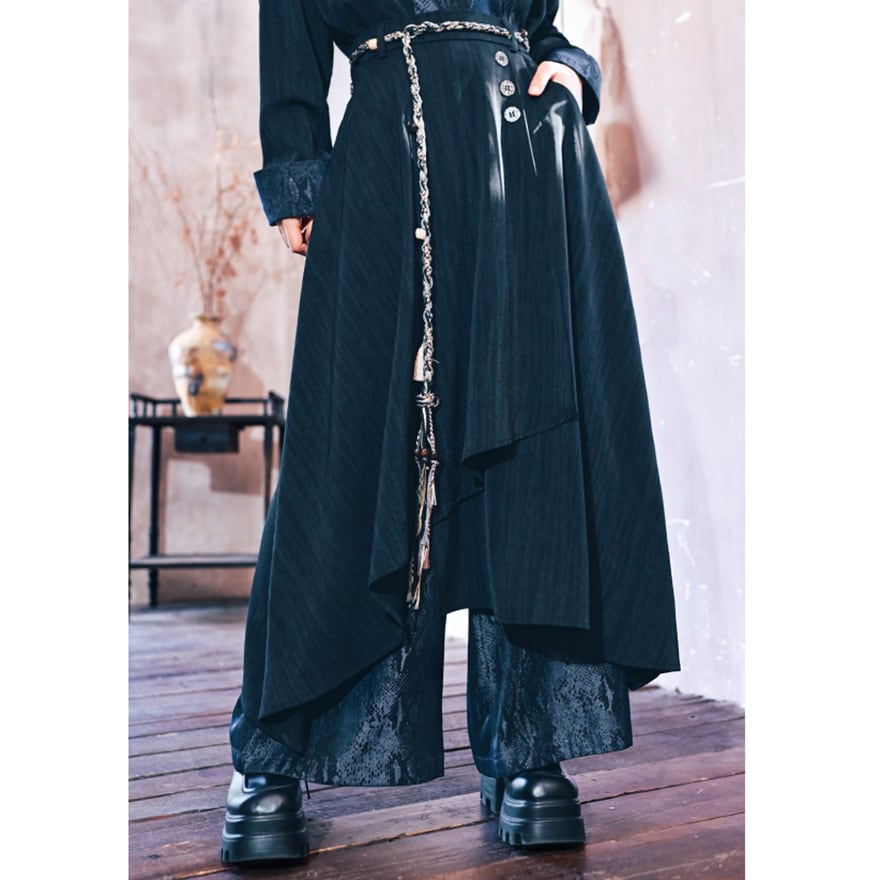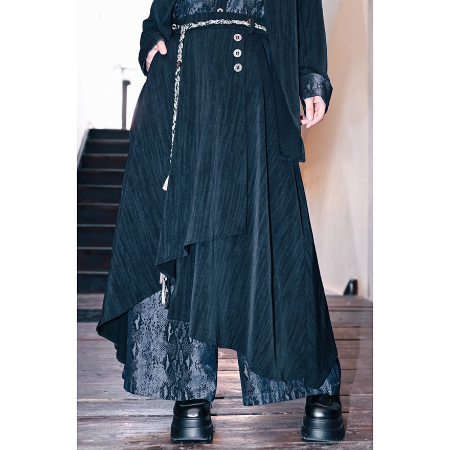 関連キーワード: #チャイナ #中華風 #チャイナパンツ #サブカル #モード #ゴシック #ワイドパンツ #袴パンツ #レイヤード #アシンメトリー #蛇柄 #パイソン柄 #個性的 #ユニセックス #黒 #ブラック #参戦服