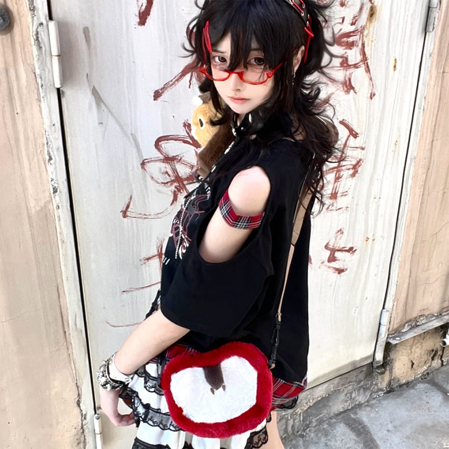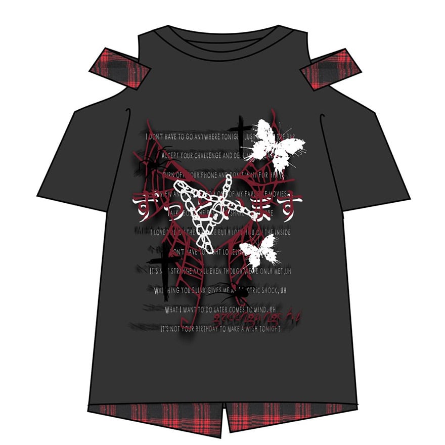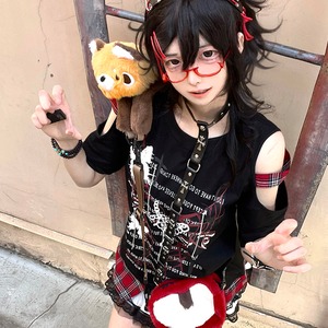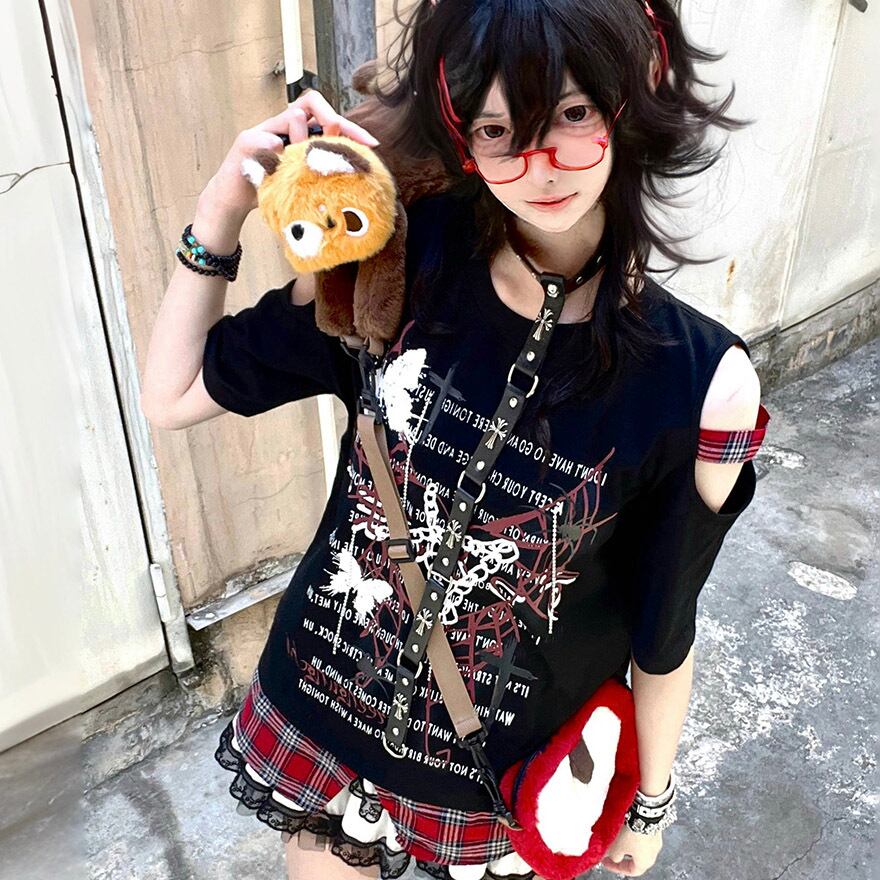 関連キーワード: #サブカル #地雷系 #パンク #ロック #グランジ #ストリートファッション #Tシャツ #オープンショルダー #肩あき #プリントT #黒 #ブラック #個性的 #参戦服 #Y2K