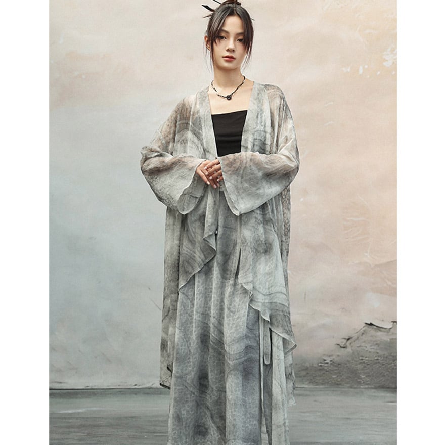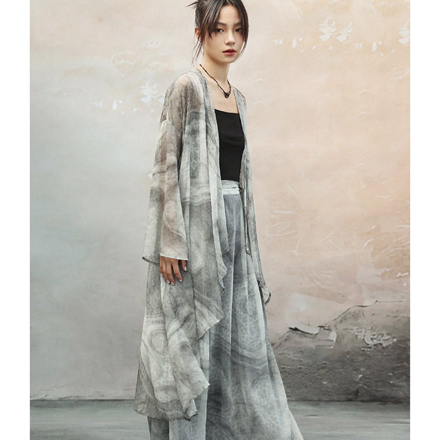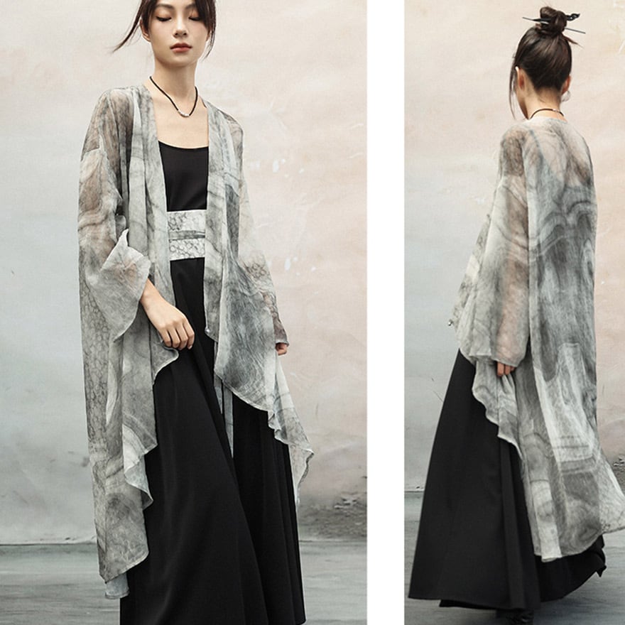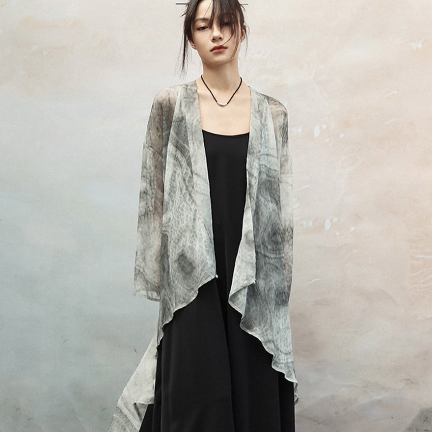 関連キーワード: #チャイナ #中華風 #和風 #羽織り #カーディガン #ジャケット #シースルー #シアー #水墨画柄 #マーブル柄 #モード #サブカル #モノトーン #個性的 #参戦服 #夏服 #ロングカーディガン