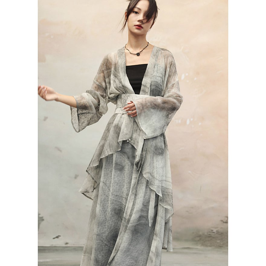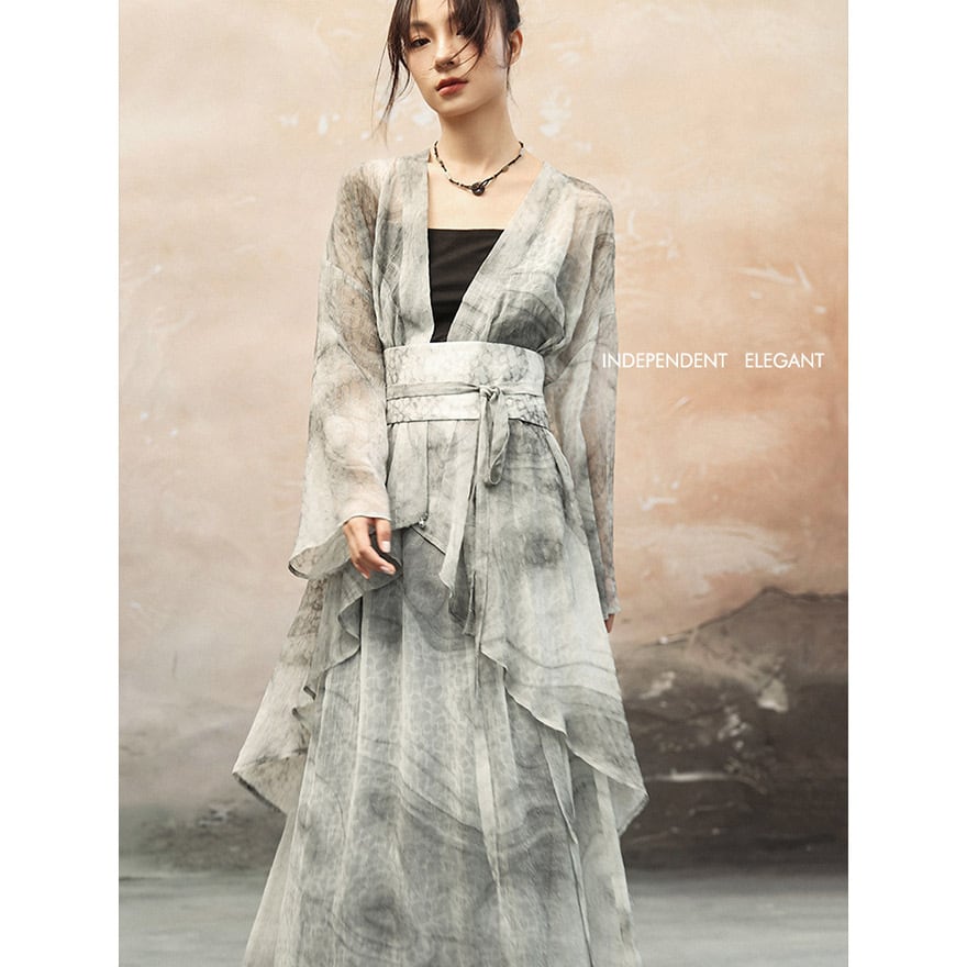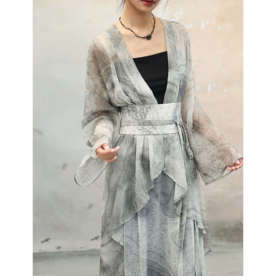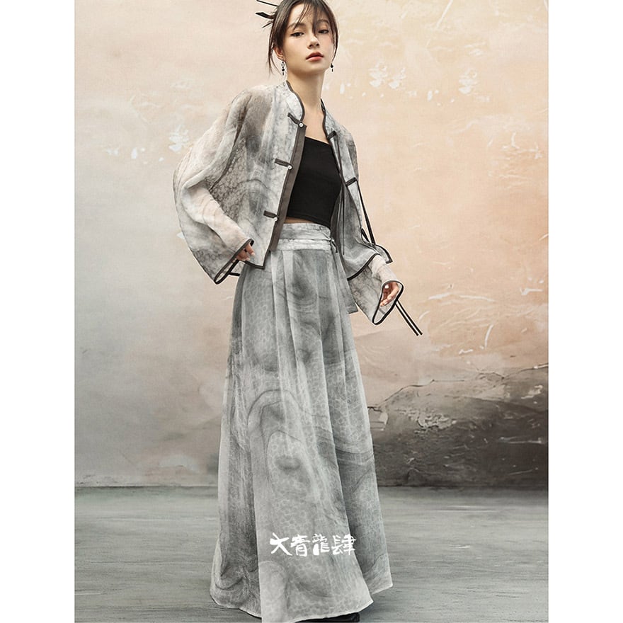 関連キーワード: #チャイナ #中華風 #和風 #ロングスカート #マキシスカート #シアー #シースルー #水墨画柄 #マーブル柄 #モード #サブカル #モノトーン #個性的 #参戦服 #夏服 #レトロ #セットアップ