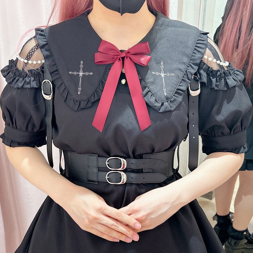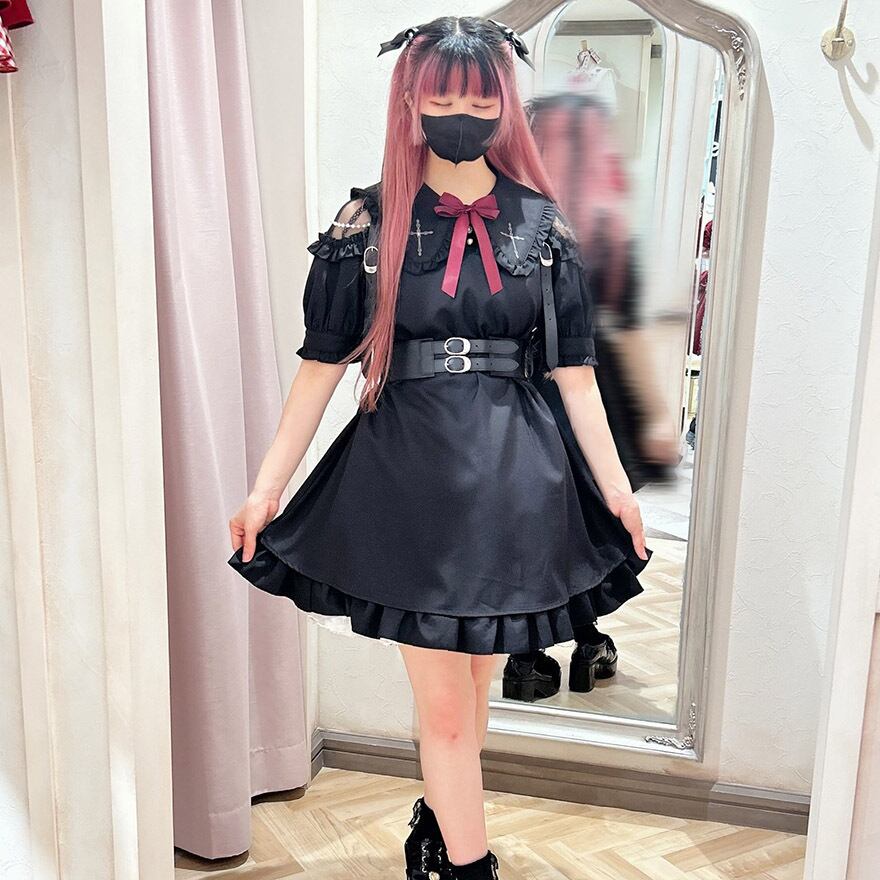 関連キーワード: #ゴスロリ #ロリータ #ワンピース #地雷系 #量産型 #サブカル #十字架 #オープンショルダー #闇かわいい #病みかわいい #半袖 #黒 #参戦服