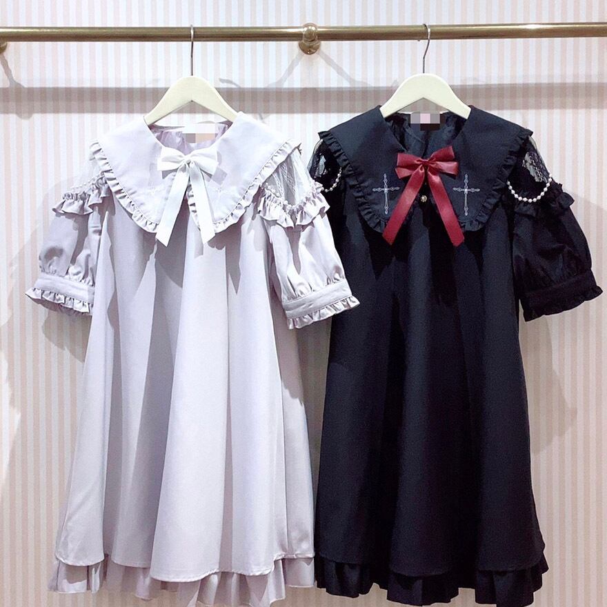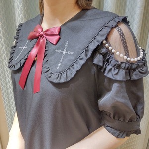 ゴスロリ ワンピース 半袖 オープンショルダー 刺繍 十字架