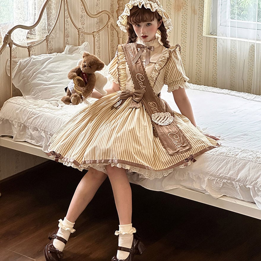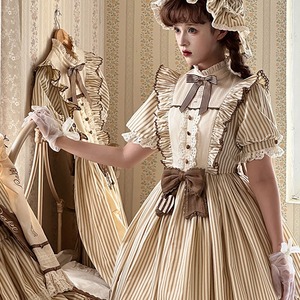 チョコレートとバニラクリームを思わせるストライプ柄が、甘くクラシカルなムードを漂わせるロリィタワンピースです。