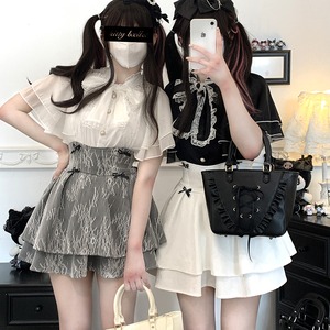 甘めのフリルブラウスと合わせれば王道の量産型コーデに、ダークなカットソーと合わせればクールな地雷系コーデが完成します。