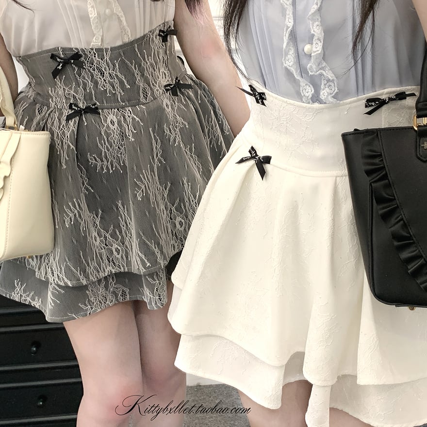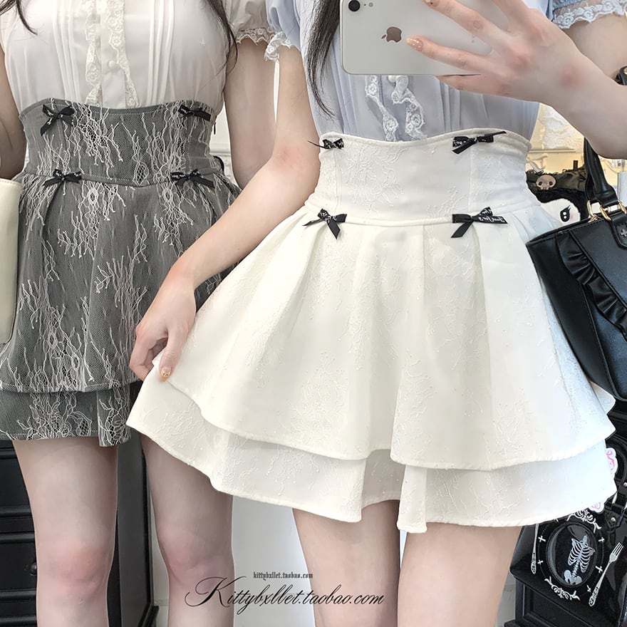 繊細なレース生地を重ねた、量産型・地雷系ファッションの王道を行くフレアミニスカートです。