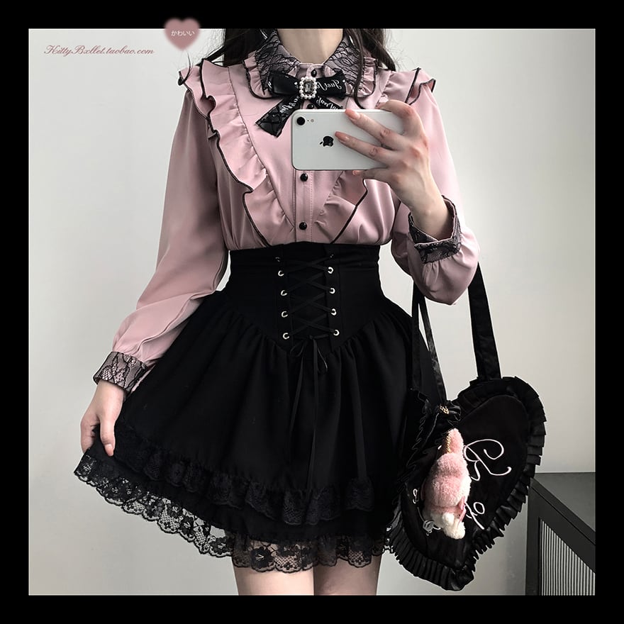 ロリィタ 地雷系 ミニスカ フレアスカート 編み上げ レース KittyBxllet 初心者