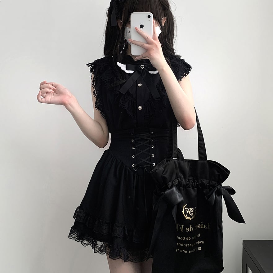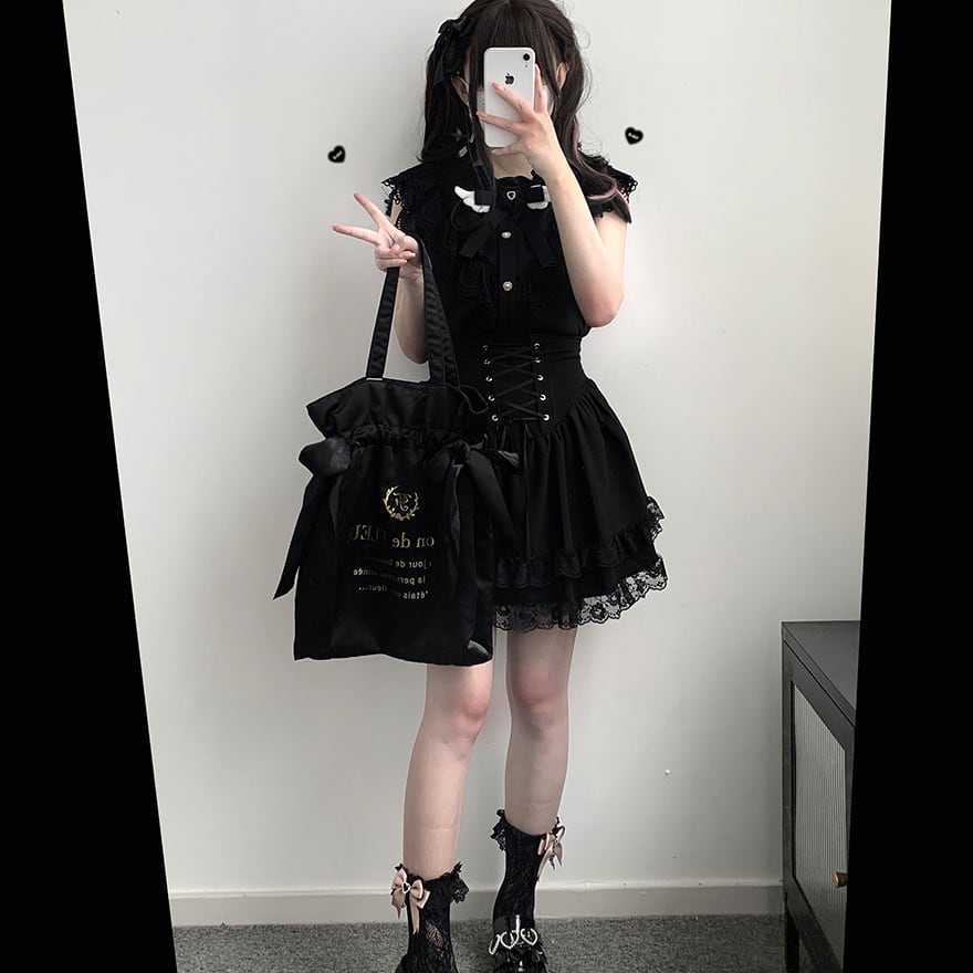 関連キーワード: #ロリィタ #地雷系 #ゴスロリ #量産型 #サブカル #スカート #ミニスカ #コルセット #編み上げ #レースアップ #レース #闇かわいい #参戦服 #モノトーン