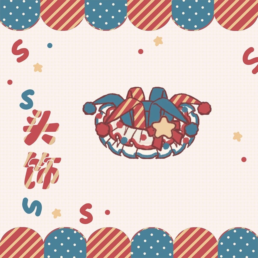 ピエロ帽、ブラウス、ジャンパースカート、ニーハイソックス