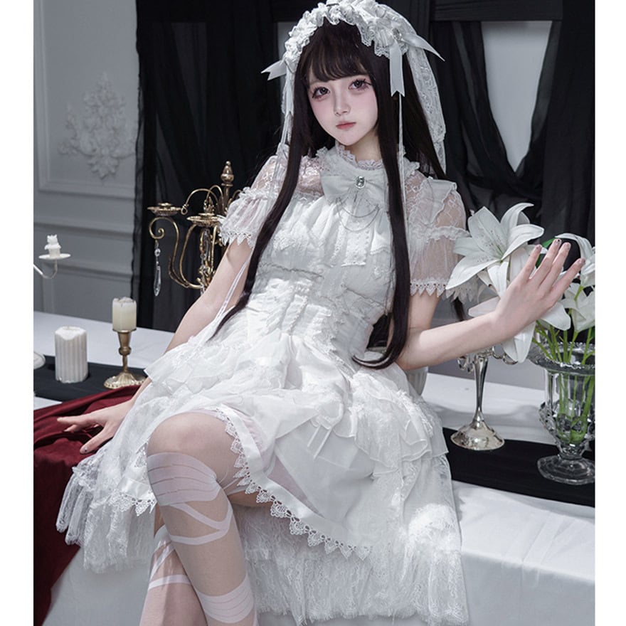 透け感のあるレースをふんだんに使用した、儚くも美しいゴシックロリータワンピースです。