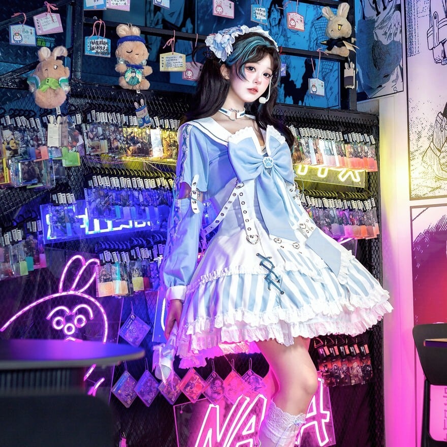 ハードなアイテムと合わせれば、パンクロックなロリータスタイルが完成します。