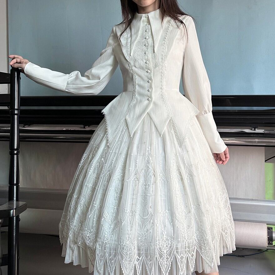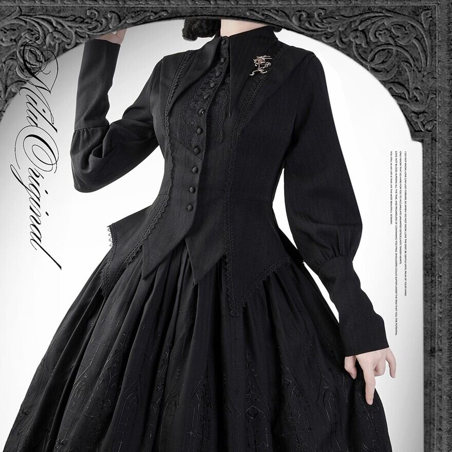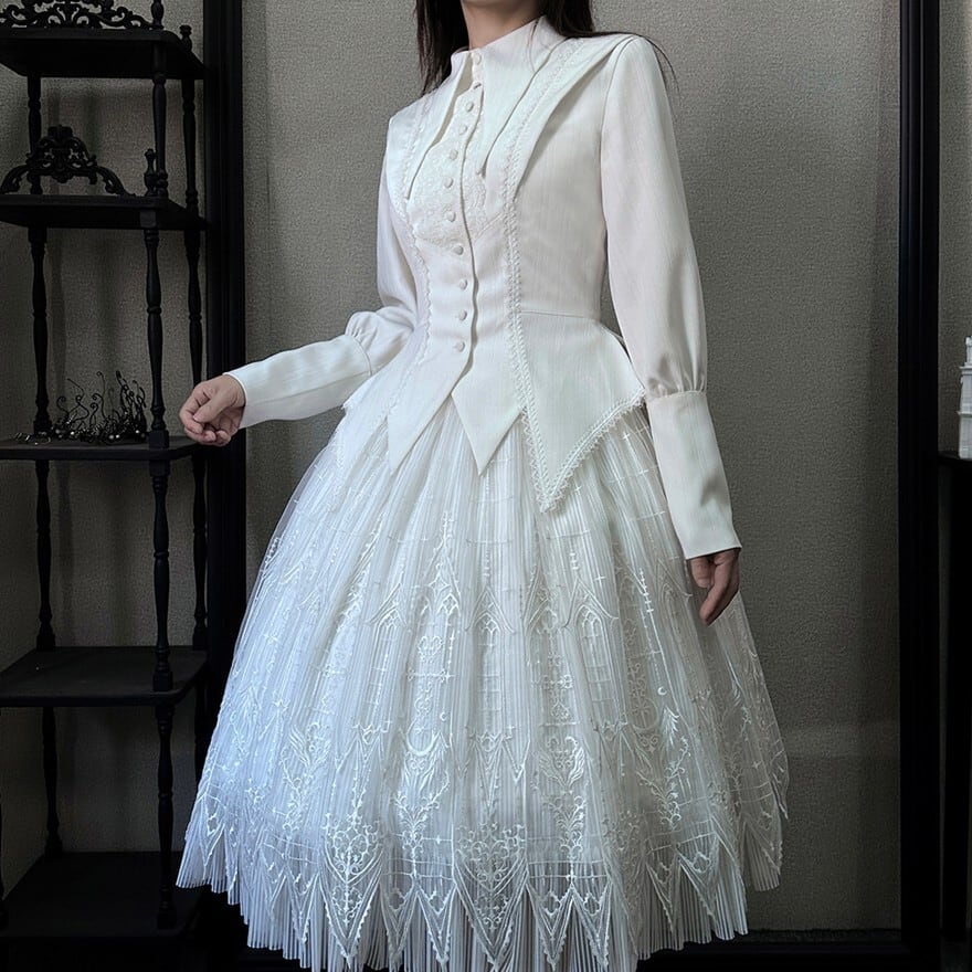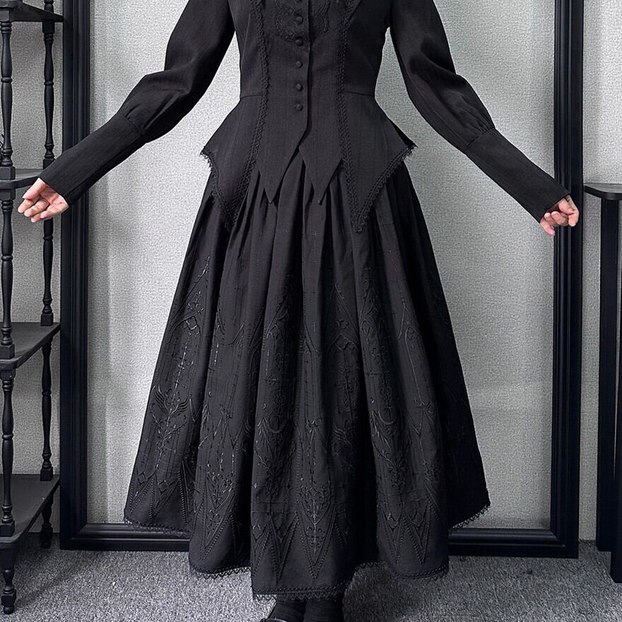 ゴスロリ セットアップ バルモアシャツ スカート 刺繍 ウエストゴム 教会 荘厳 神秘的 大人ゴシック アラサー 30代