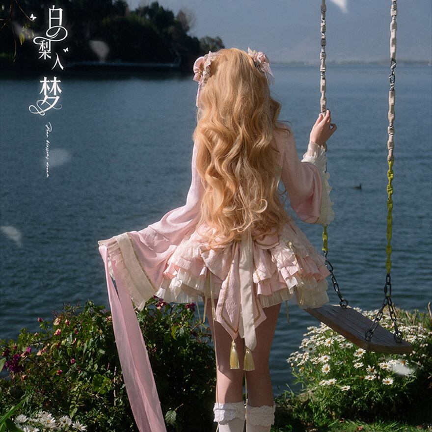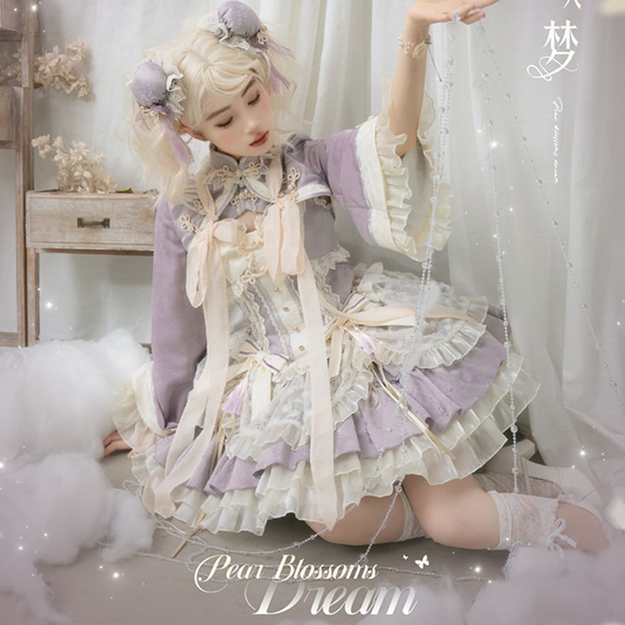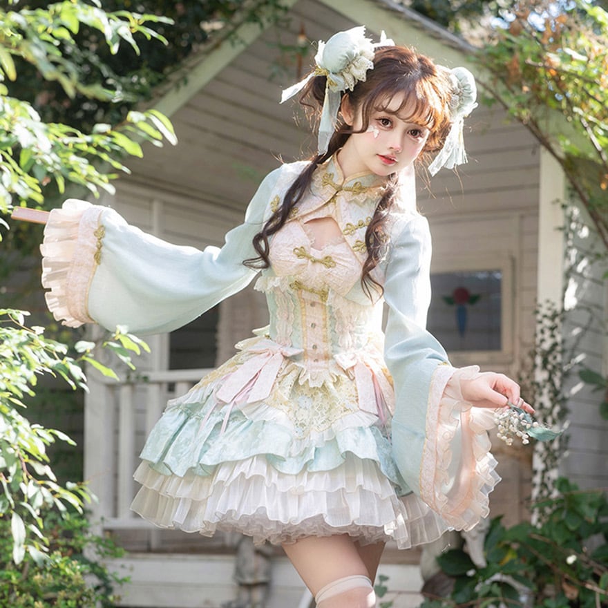 中華風のディテールとロリータの甘さが絶妙に融合した、個性的で目を惹く一着。
