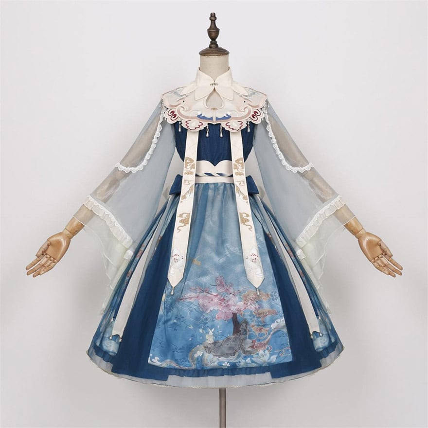 伝統的な漢服の気品と、ロリータファッションの可愛らしさが見事に融合した、芸術品のような一着です。