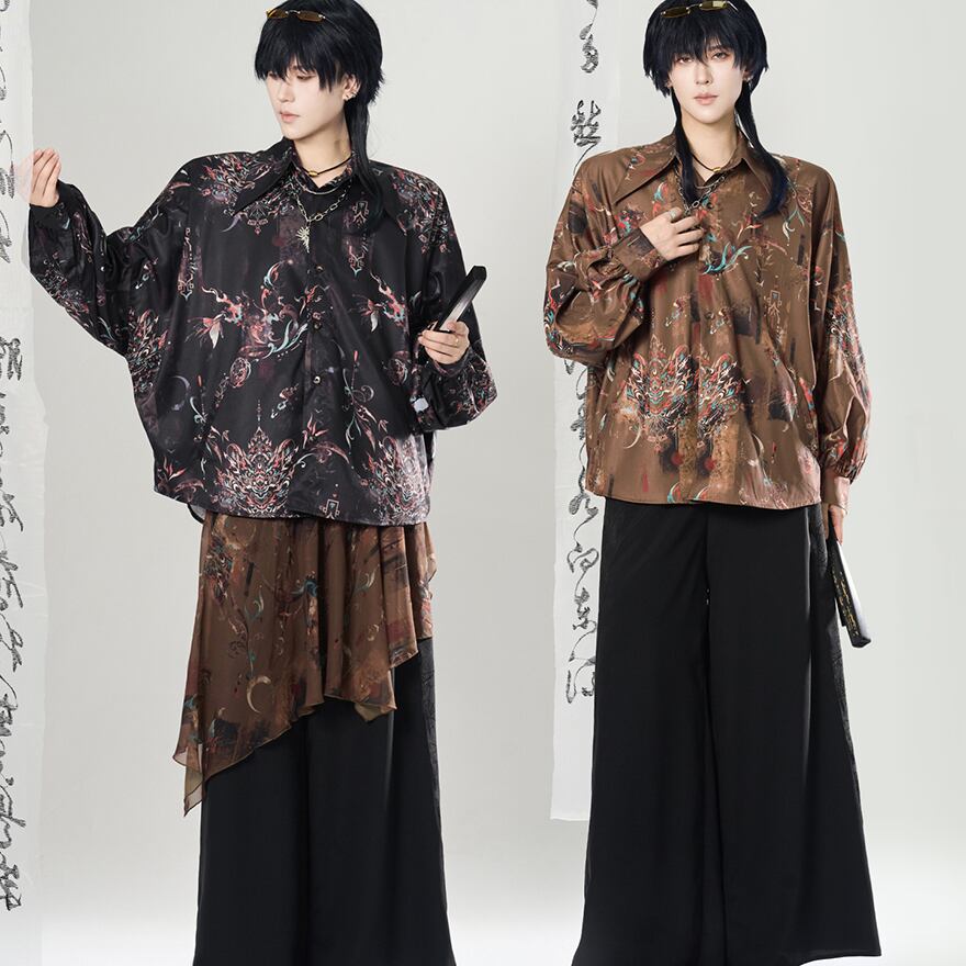 関連キーワード: #中華風 #チャイナブラウス #オリエンタル #クラシカル #ユニセックス #カップルコーデ #シミラールック #オーバーサイズ #アート #モード系 #秋服 #大人コーデ