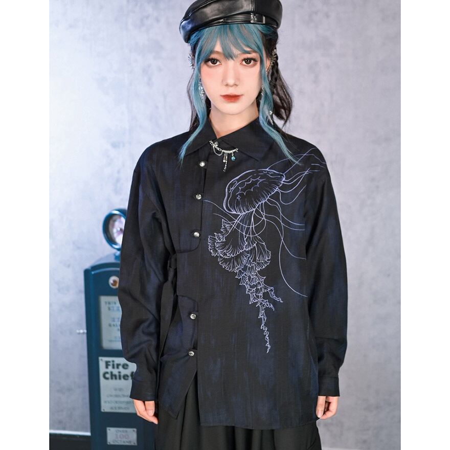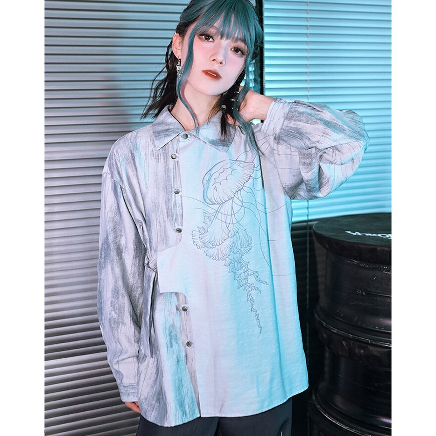 関連キーワード: #デザインシャツ #モード系 #サブカル #ストリートファッション #クラゲ #海月 #プリントシャツ #アシンメトリー #個性的 #ユニセックス #オーバーサイズ #アート #幻想的