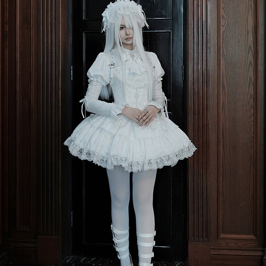 ホワイトロリィタ 4点セット ミニスカート 控えめ ゴシック PUJIオリジナル イベント 撮影会衣装