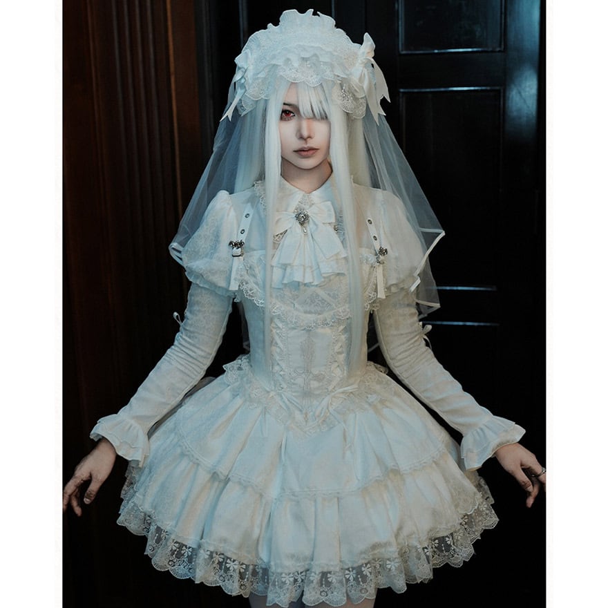 関連キーワード: #ロリータ #クラロリ #白ロリ #ワンピース #セットアップ #ミニ #白 #レース #フリル #エレガント #ドール #可愛い #参戦服