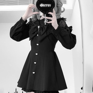 黒を基調とした、ゴシックでドーリーな雰囲気のワンピースです。