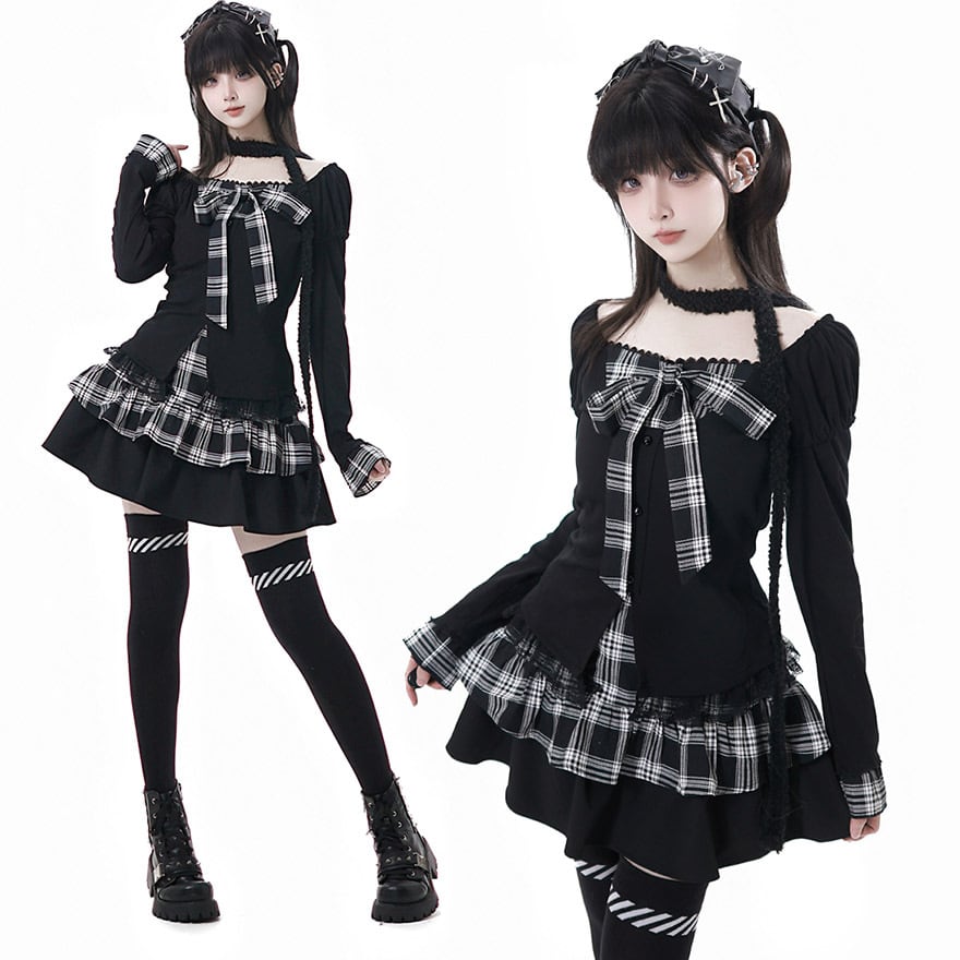 関連キーワード: #地雷系 #量産型 #トップス #チェック柄 #リボン #フリル #レース #闇可愛い #推し活 #参戦服 #双子コーデ