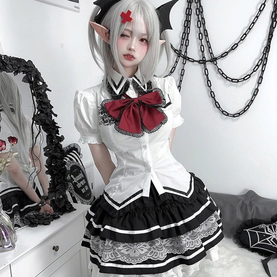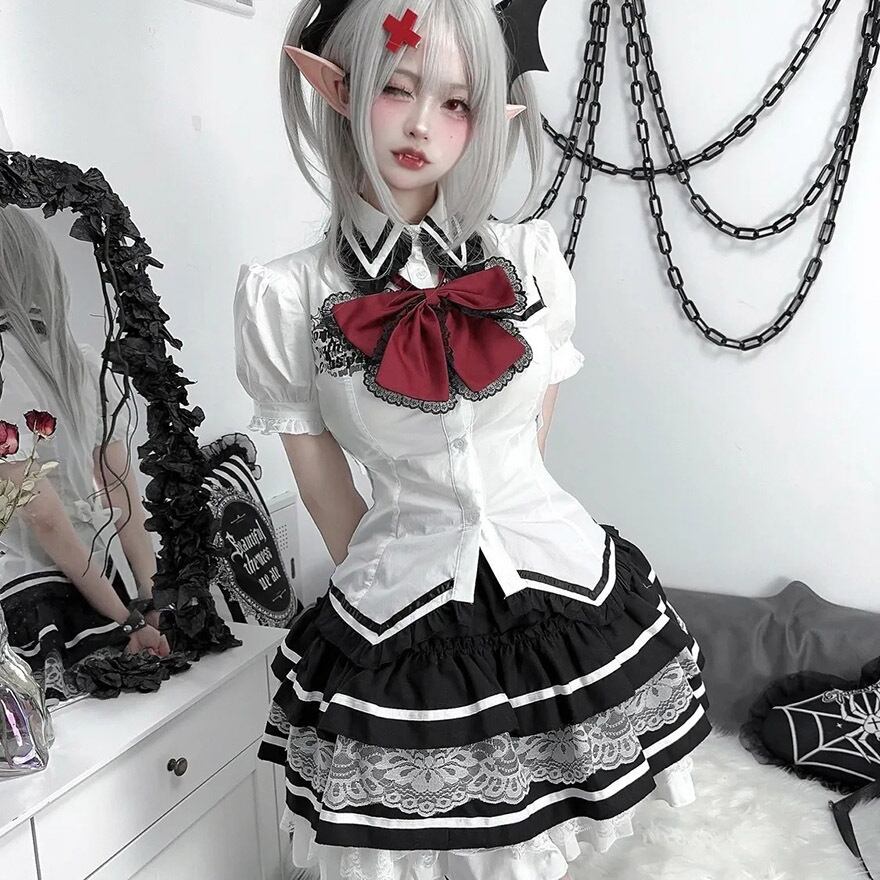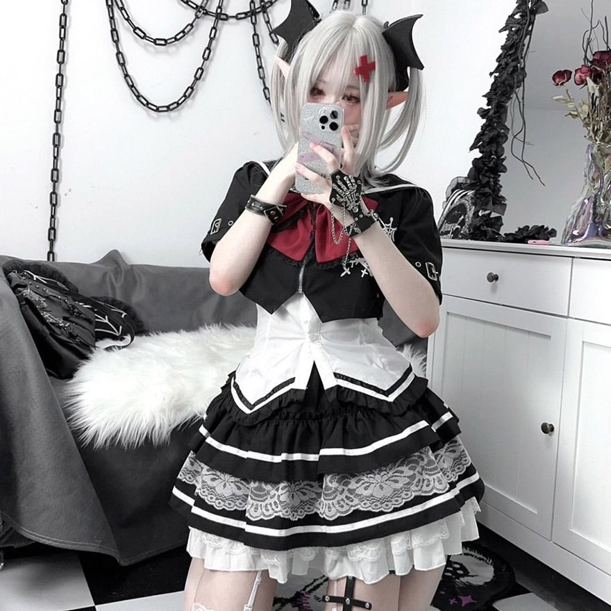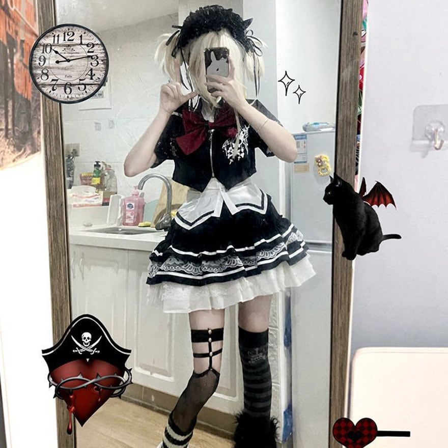 地雷系ゴシック 制服セット 上下セット フリル レース ダークファッション 推し活 ライブ衣装