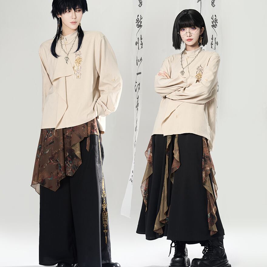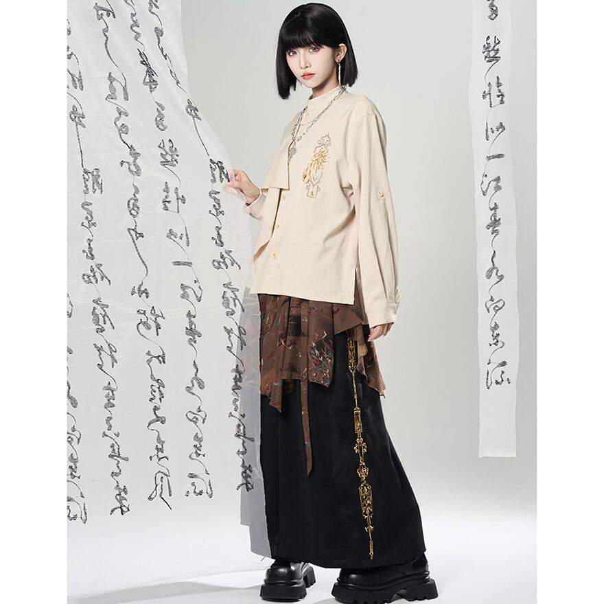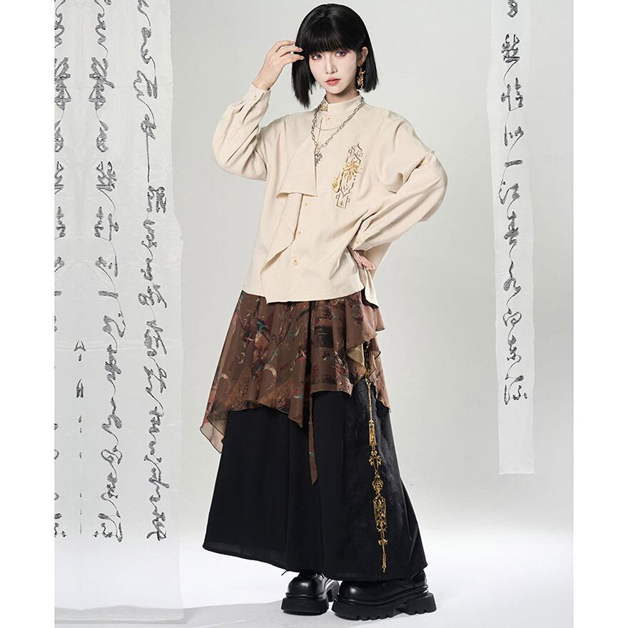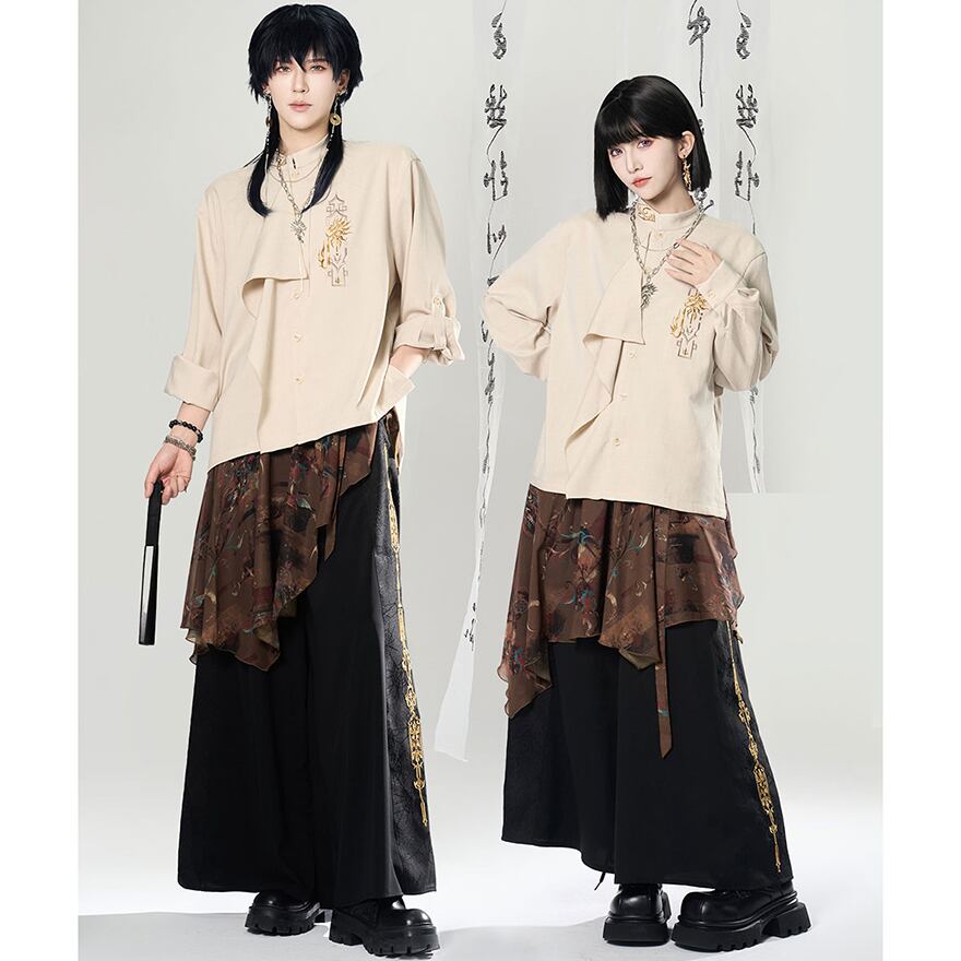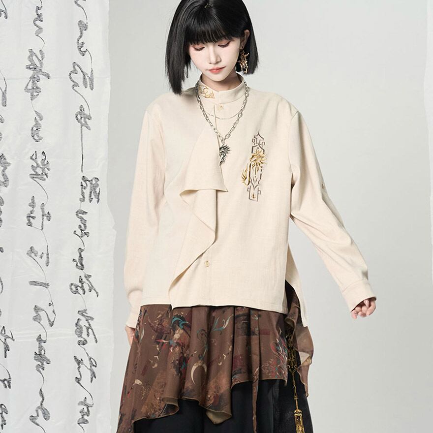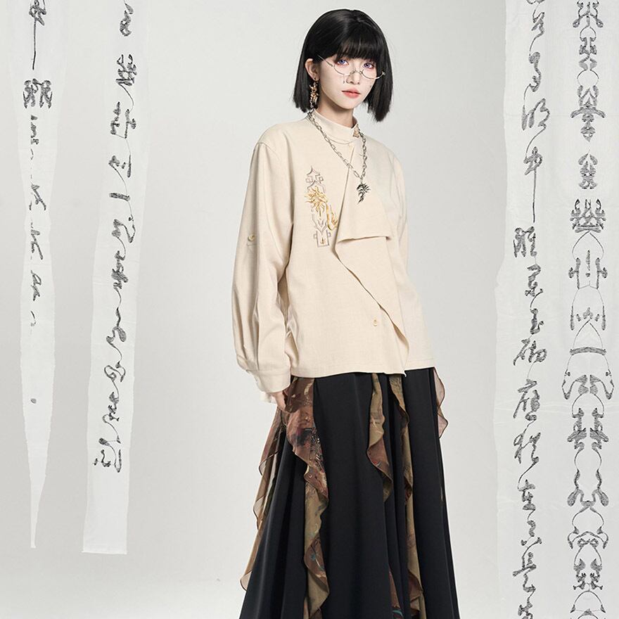 関連キーワード: #チャイナ風 #中華風 #シャツ #刺繍 #モード系 #サブカル #ジェンダーレス #ユニセックス #個性的 #スタンドカラー #アシンメトリー