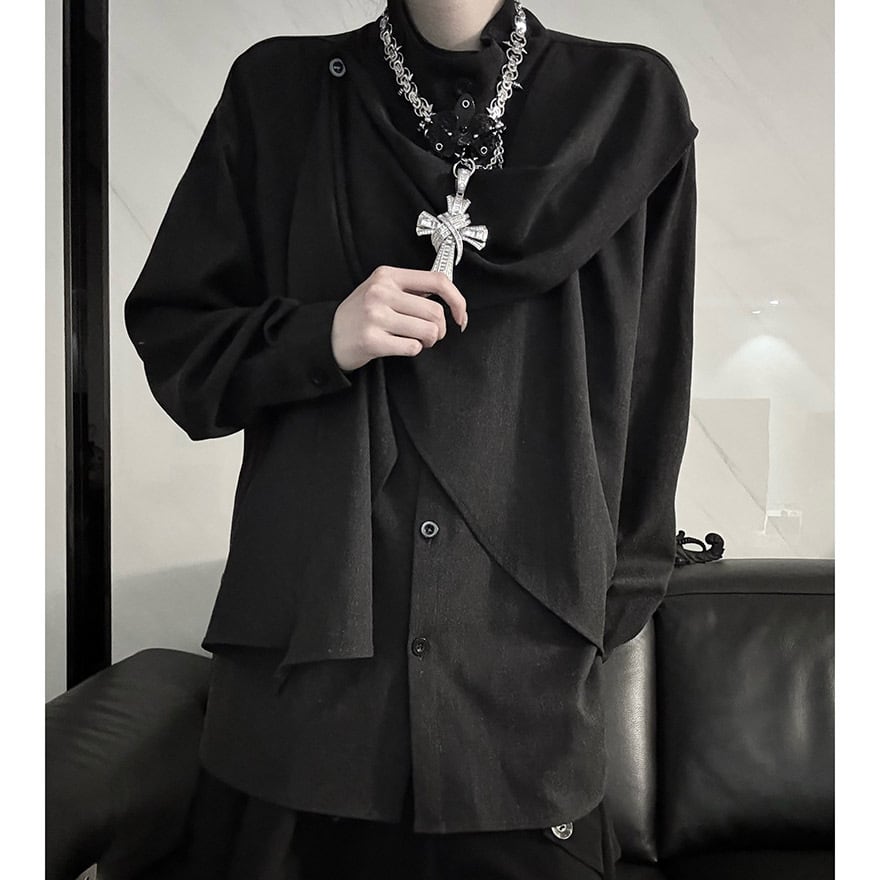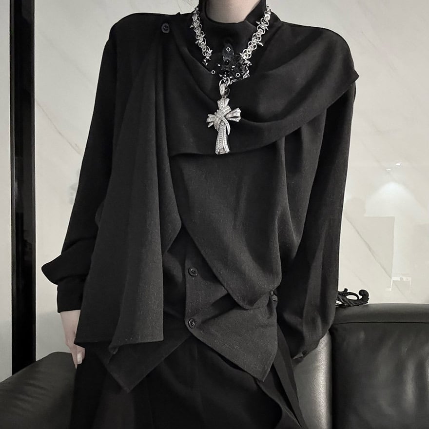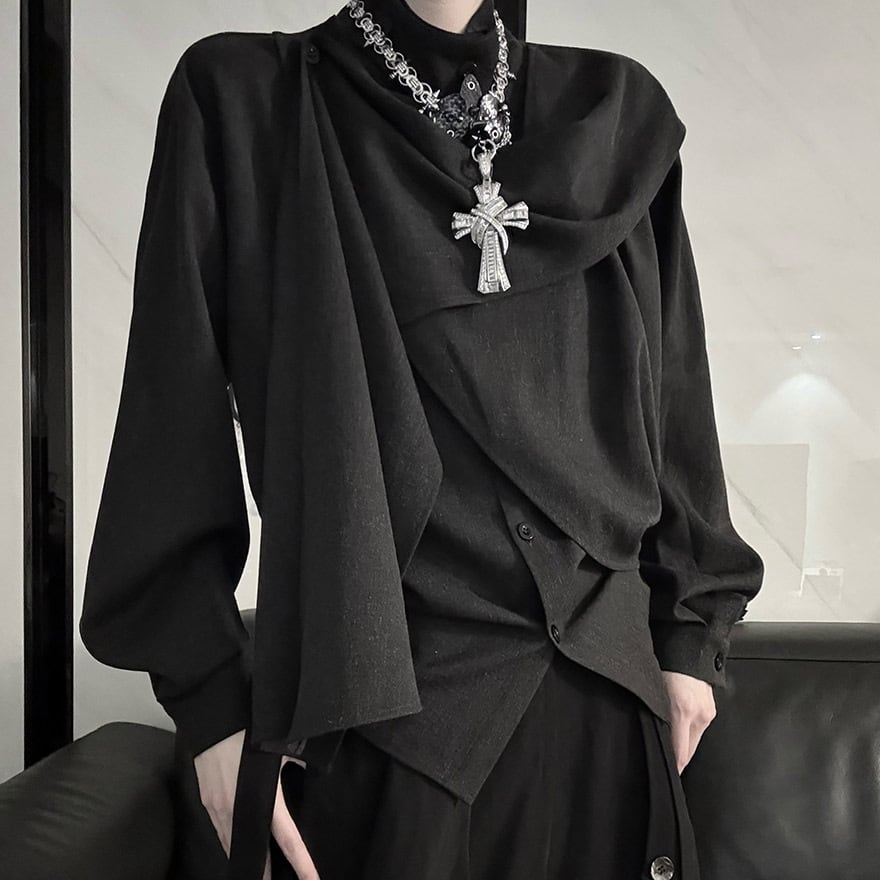 関連キーワード: #モード系 #アシンメトリー #ドレープ #スタンドカラー #個性的 #サブカル #ジェンダーレス #デザインシャツ #パーティコーデ #大人カジュアル