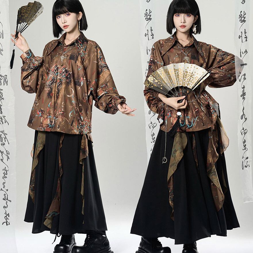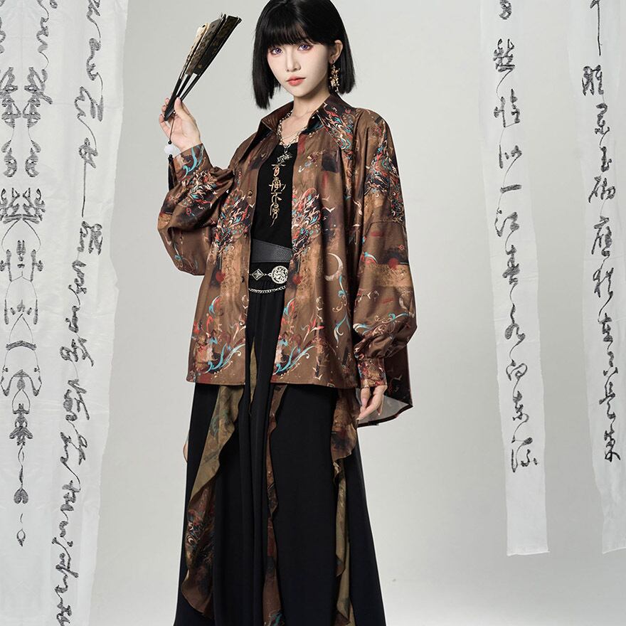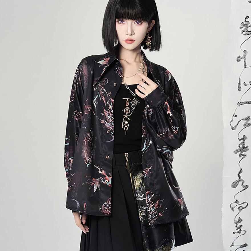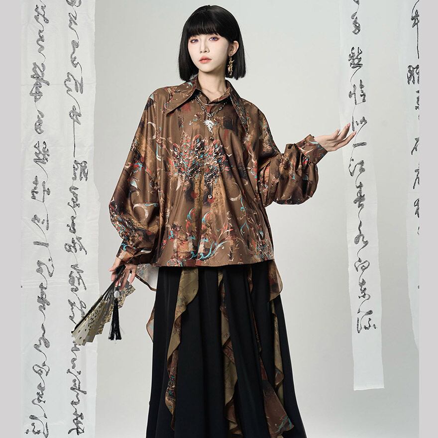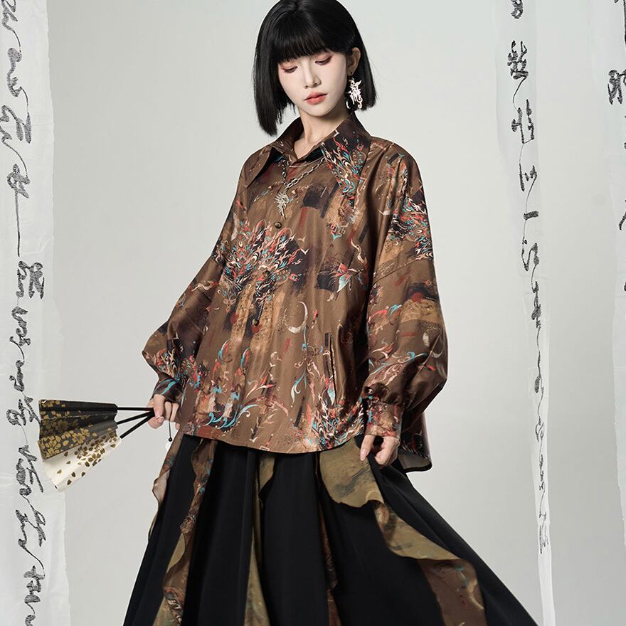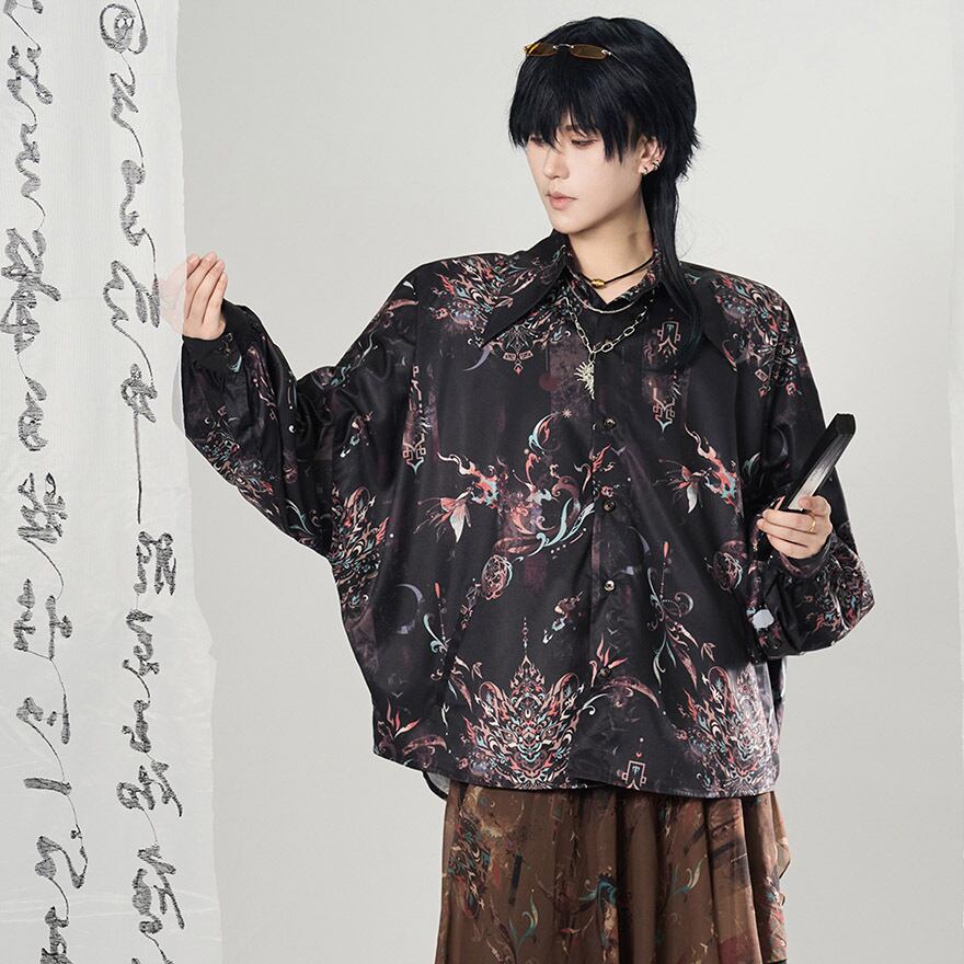 関連キーワード: #チャイナ風 #中華風 #シャツ #長袖 #獅子舞 #総柄 #モード系 #サブカル #ジェンダーレス #ユニセックス #個性的 #ストリート