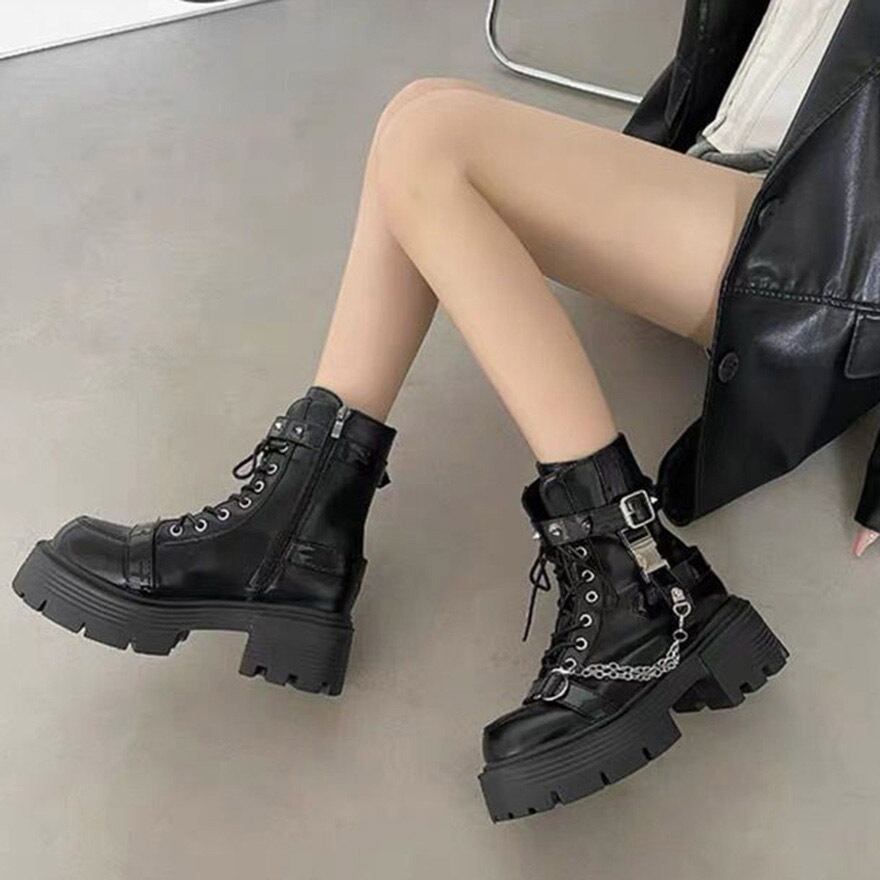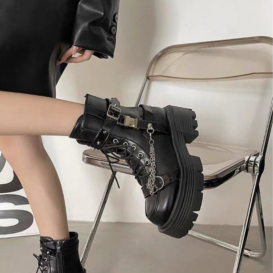 サブカル 地雷系 厚底ブーツ バックルベルト ストリートファッション