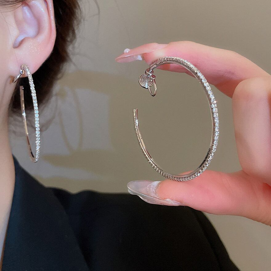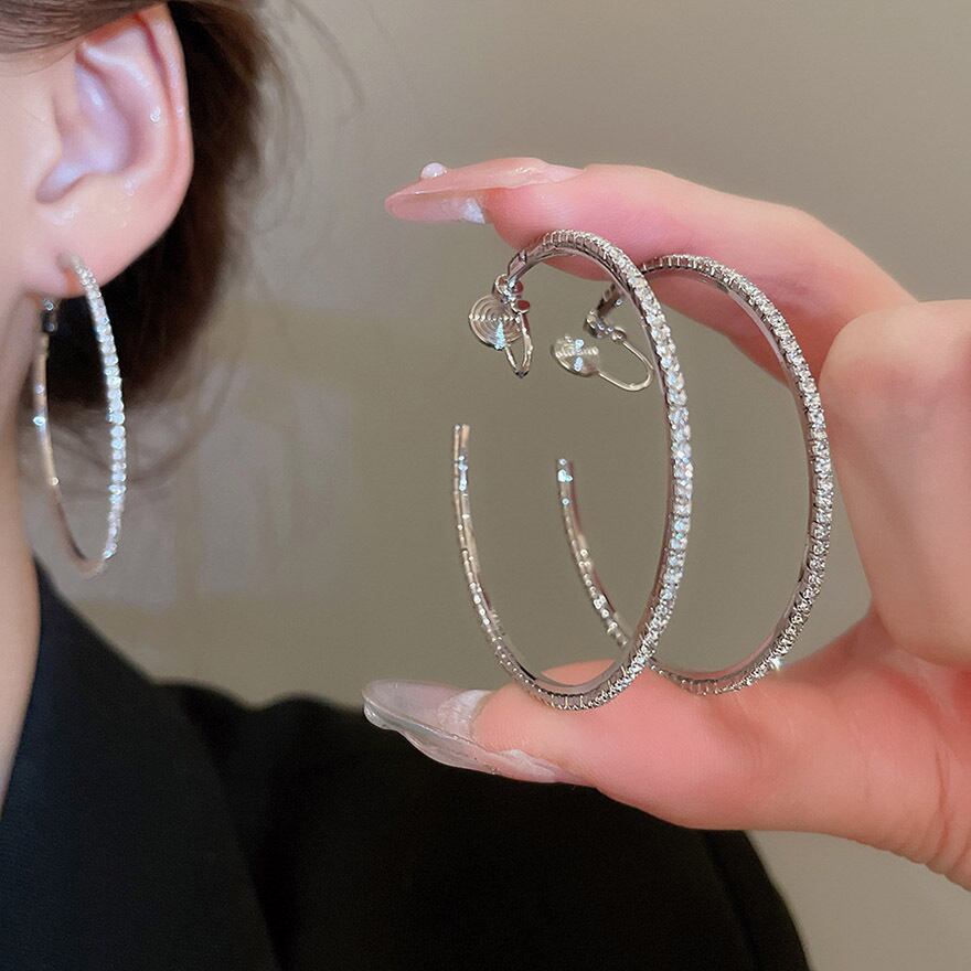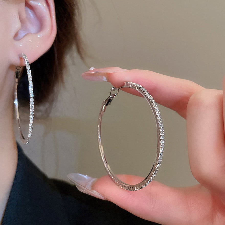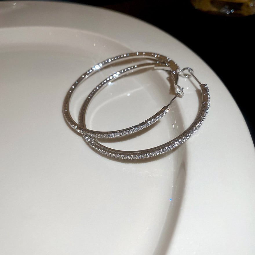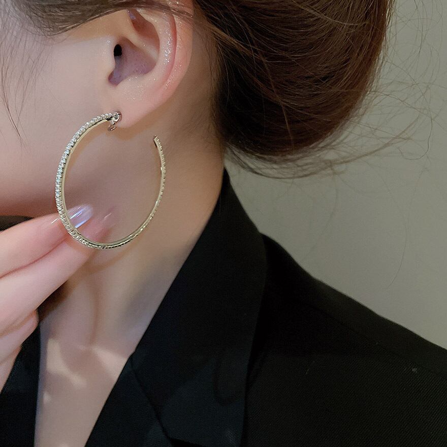 定番のフープデザインに、眩いほどのビジューを贅沢に敷き詰めたイヤリングです。