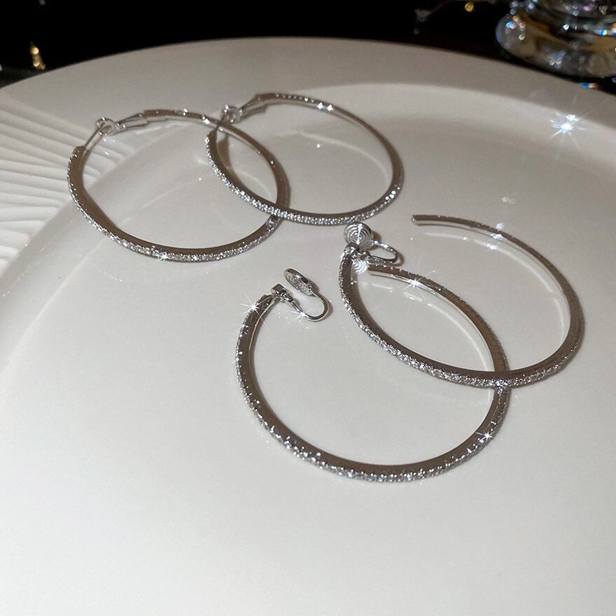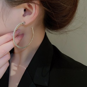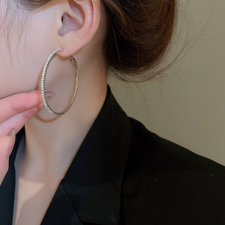 大ぶりなリングが顔周りで揺れるたびにキラキラと輝き、華やかな印象を与えます。