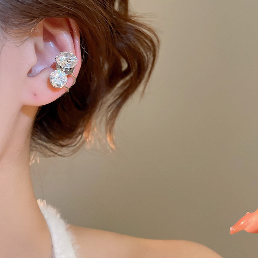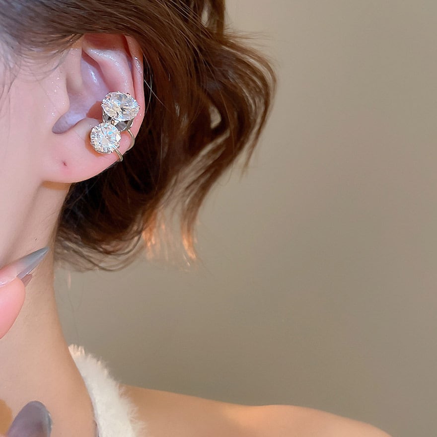 大粒のビジューが2つ連なった、存在感抜群のイヤーカフです。