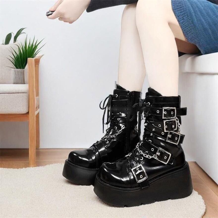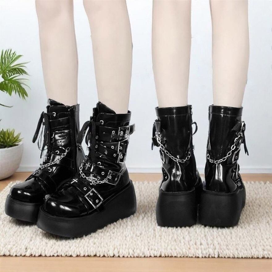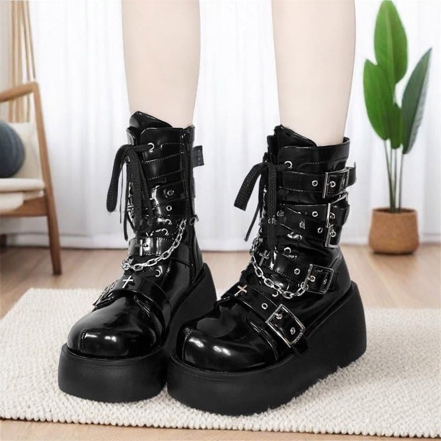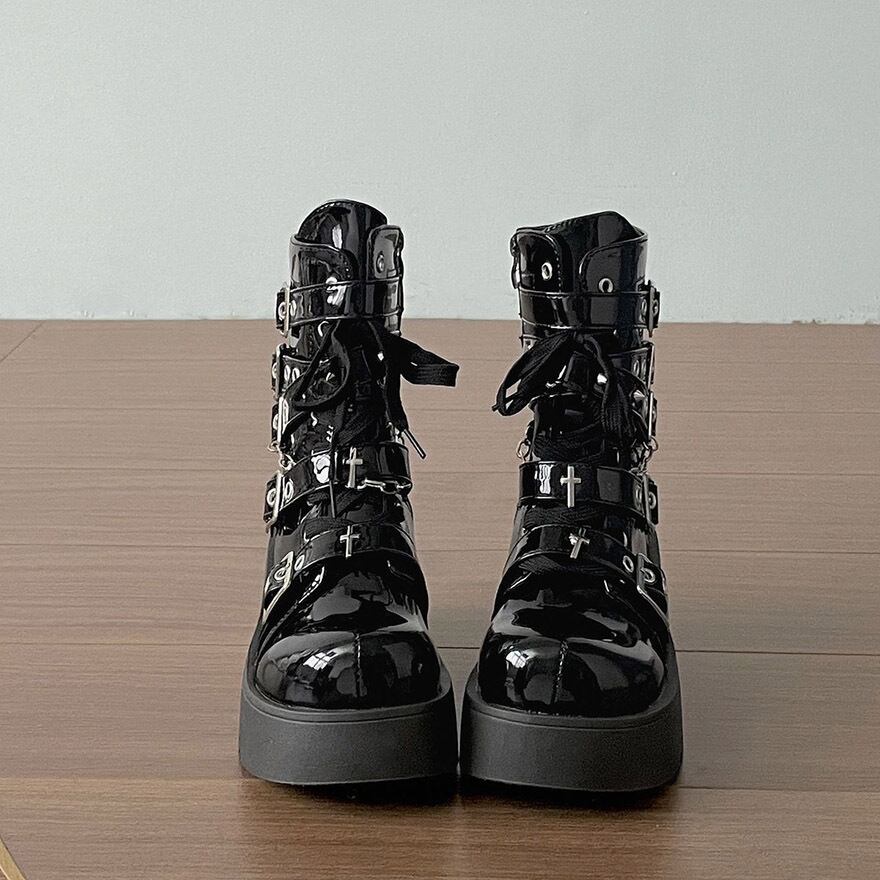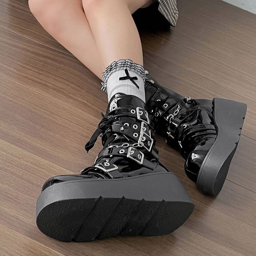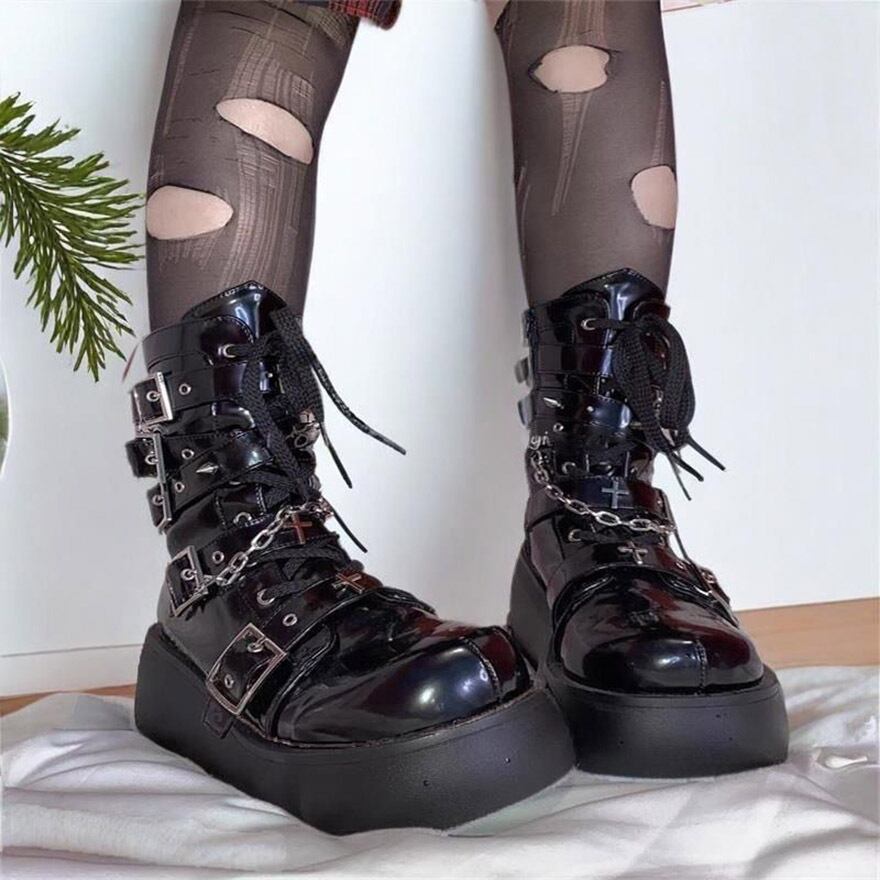 関連キーワード: #地雷系 #サブカル #パンク #ゴシック #ストリートファッション #厚底ブーツ #厚底 #チェーン #十字架 #エナメル #可愛い #韓国ファッション