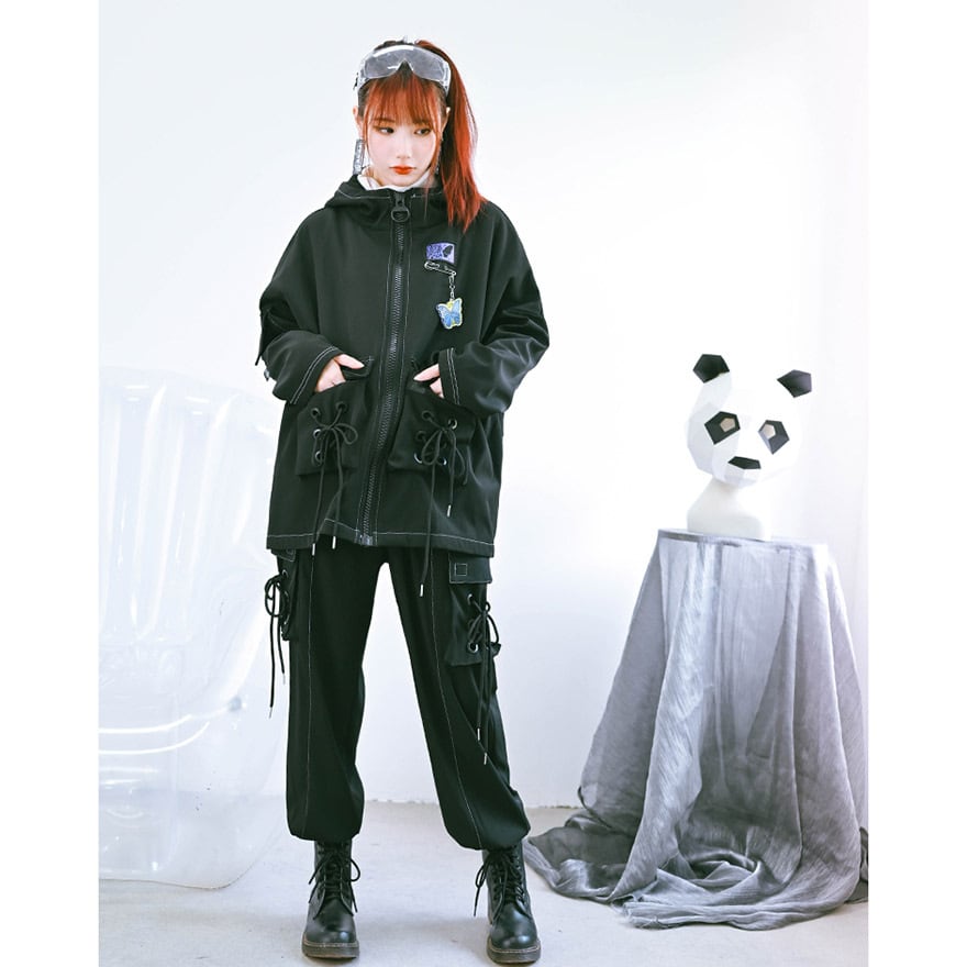 関連キーワード: #サブカル #地雷系 #ストリートファッション #パラシュートパンツ #カーゴパンツ #ワイドパンツ #レースアップ #ボーイッシュ #ダンス #黒