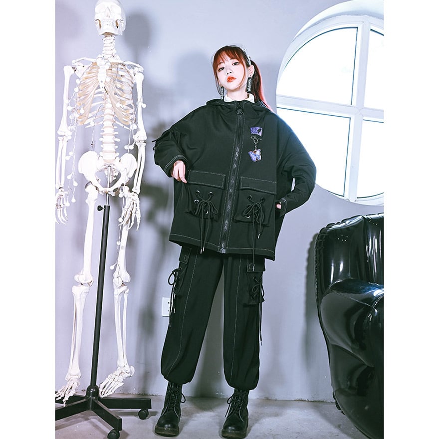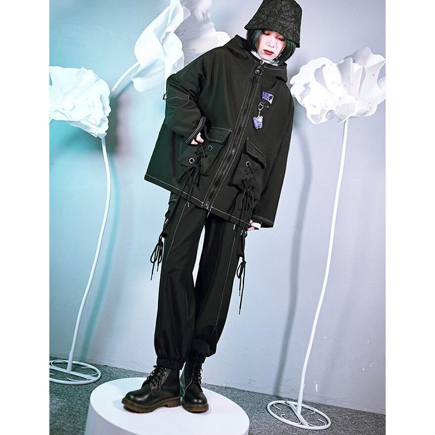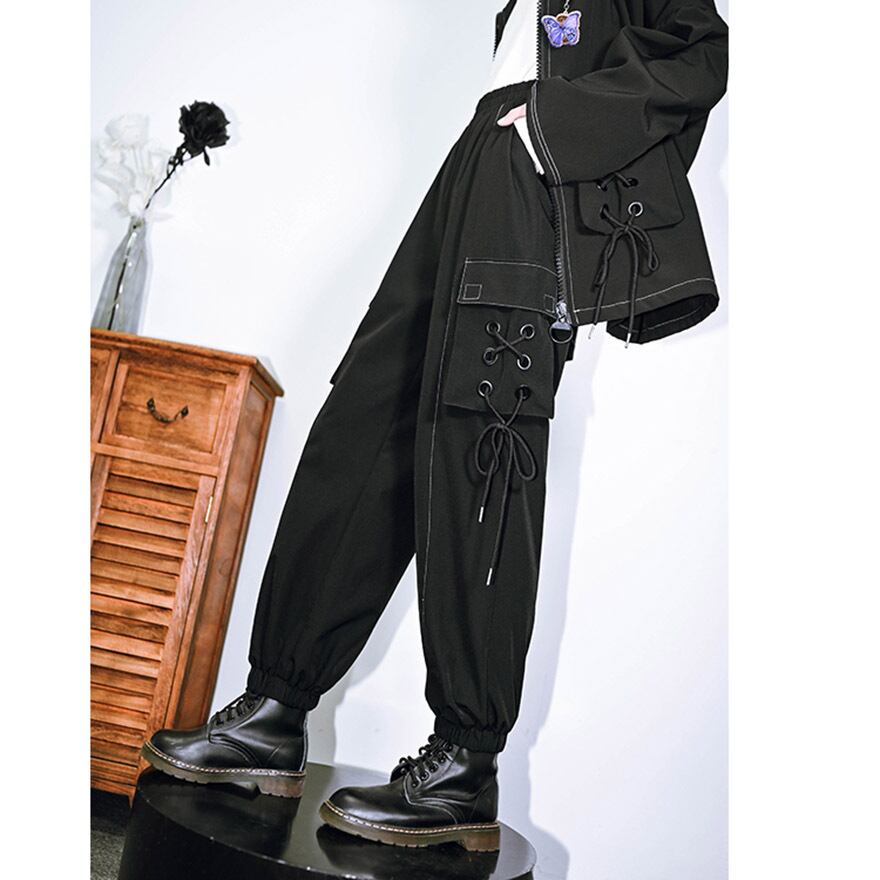地雷系 ワイドパンツ パラシュートパンツ レースアップ ストリートファッション 古怪舎